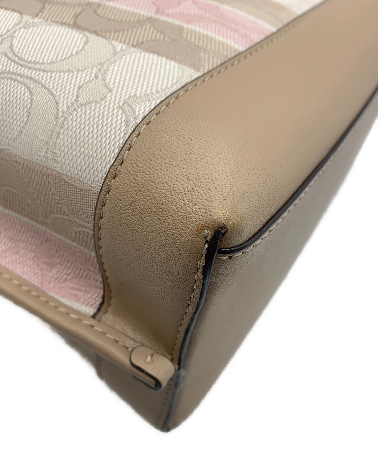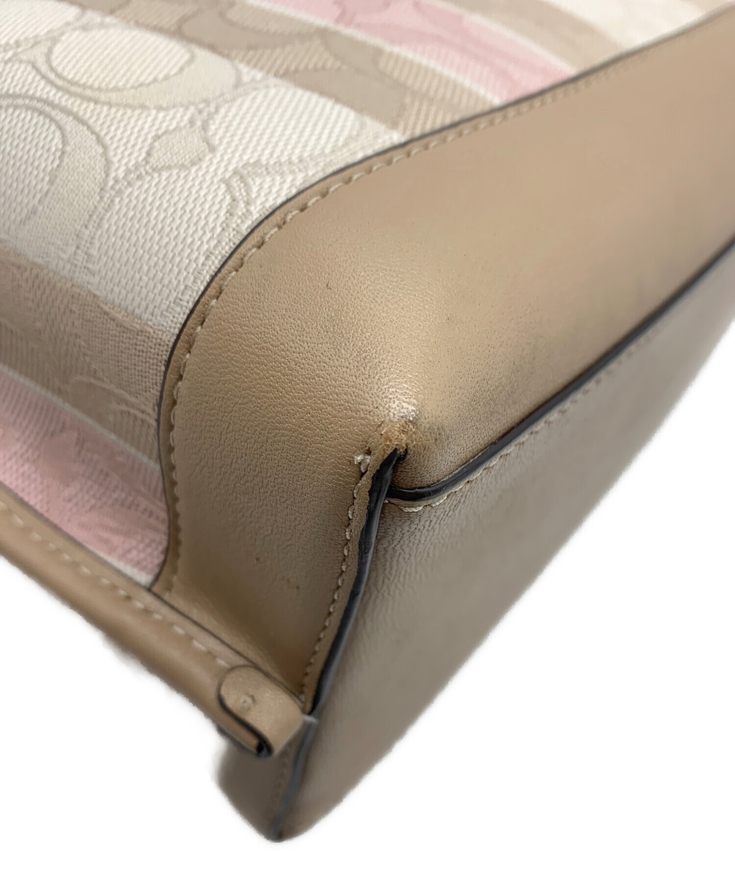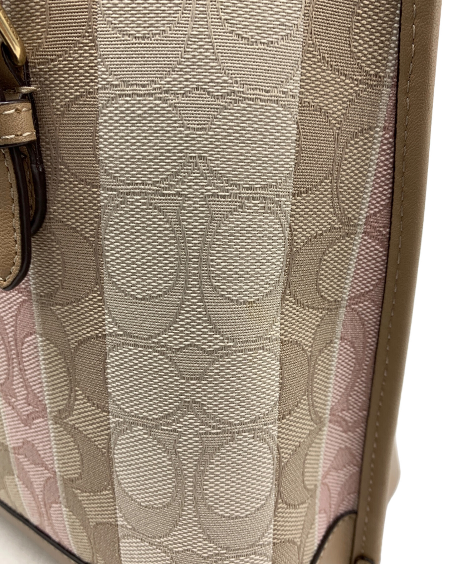 • COACH(コーチ)COACH (コーチ) モリー トート 25 ジャガードウィズストライプ ピンクベージュの古着・服飾アイテム 角スレあり