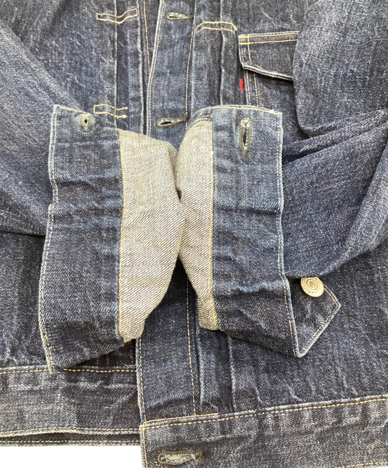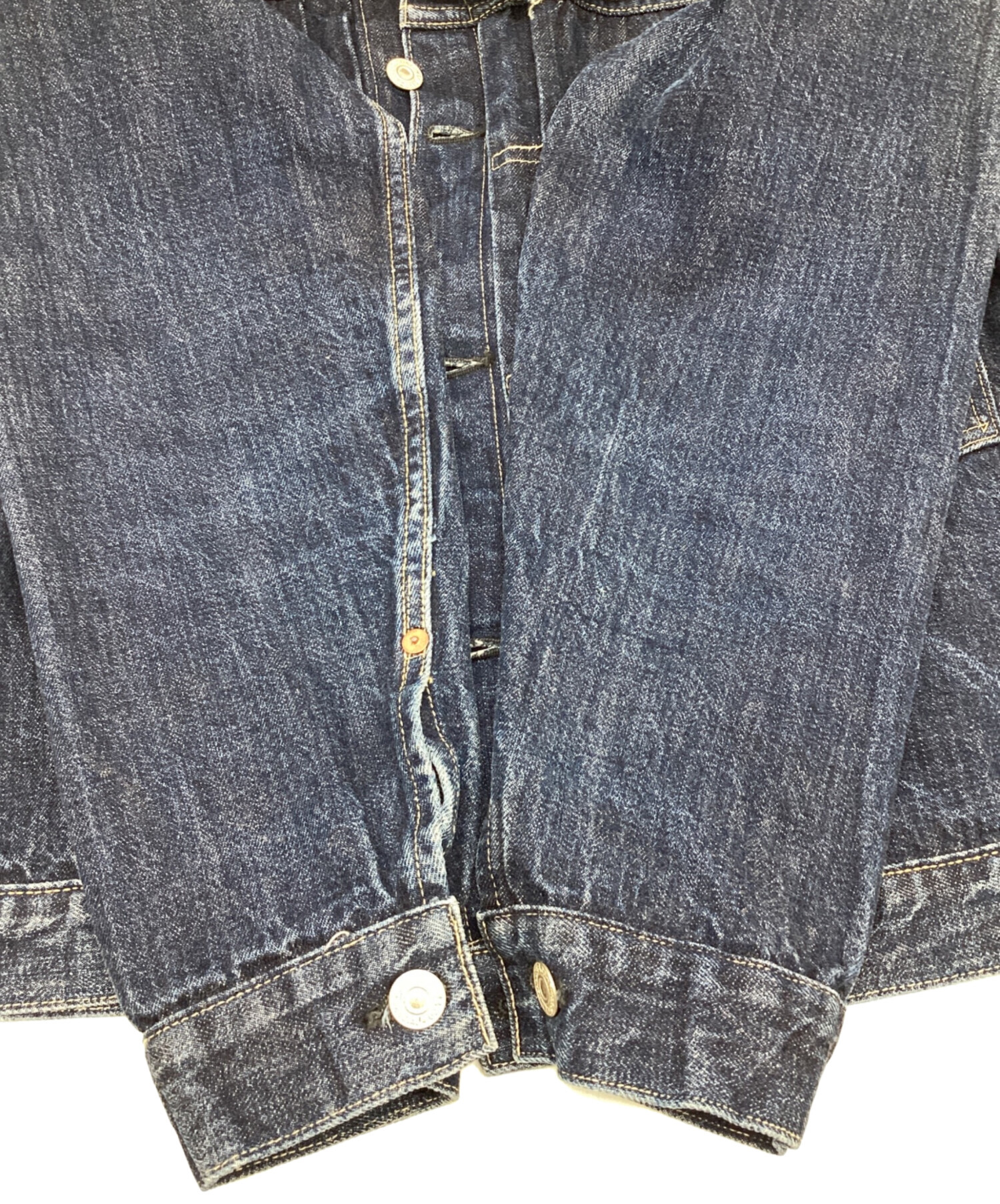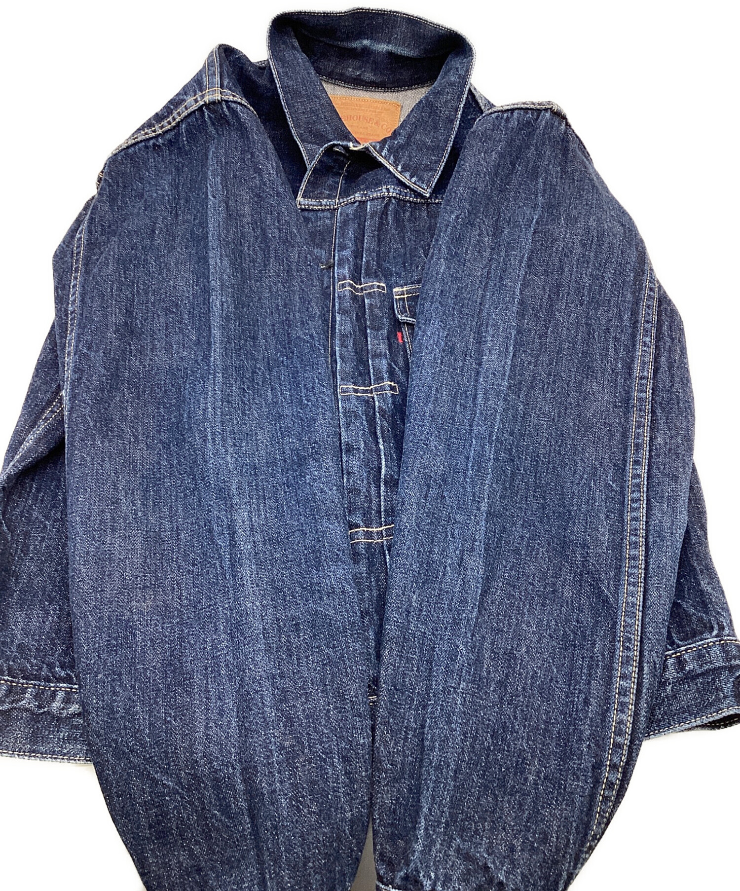 • WAREHOUSE(ウエアハウス)WAREHOUSE (ウエアハウス) 1ST TYPE トラッカージャケット ブルー サイズ:W38の古着・服飾アイテム 袖に畳み跡のアタリあり