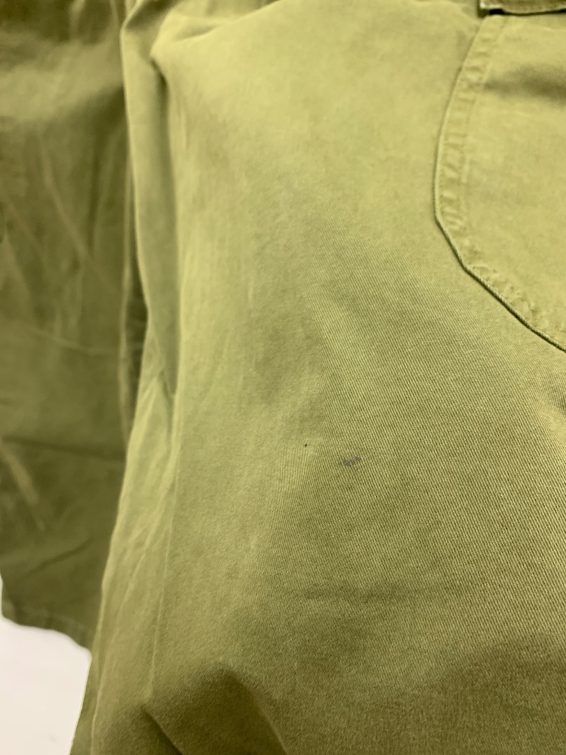 目立つシミや汚れ、におい等がある場合は商品画像や説明文にて極力表記させていただいておりますが、中古品という商品の特性上、全ての瑕疵や不備、洋服直し箇所を撮影・記載をすることは難しくなっております。また、ほとんどのアイテムは店頭と併売しておりますため、出品掲載時からコンディションが変動している場合もございます。あらかじめご了承くださいませ。