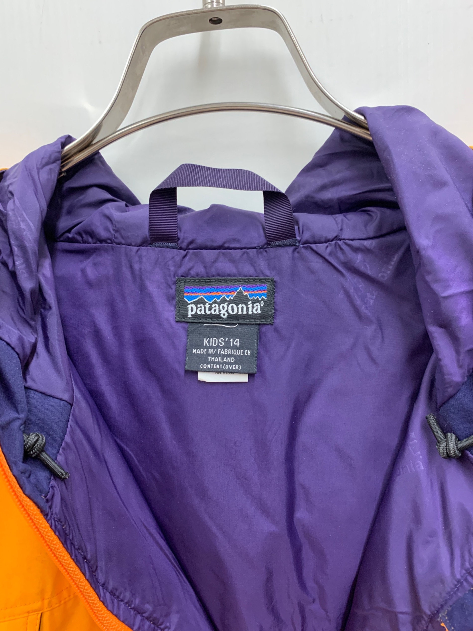 • Patagonia(パタゴニア)Patagonia (パタゴニア) アノラックパーカー オレンジ×パープル サイズ:14の古着・服飾アイテム 金具サビ・ヨゴレ有