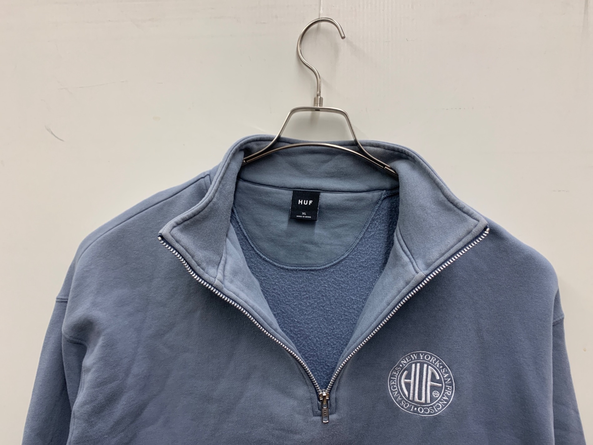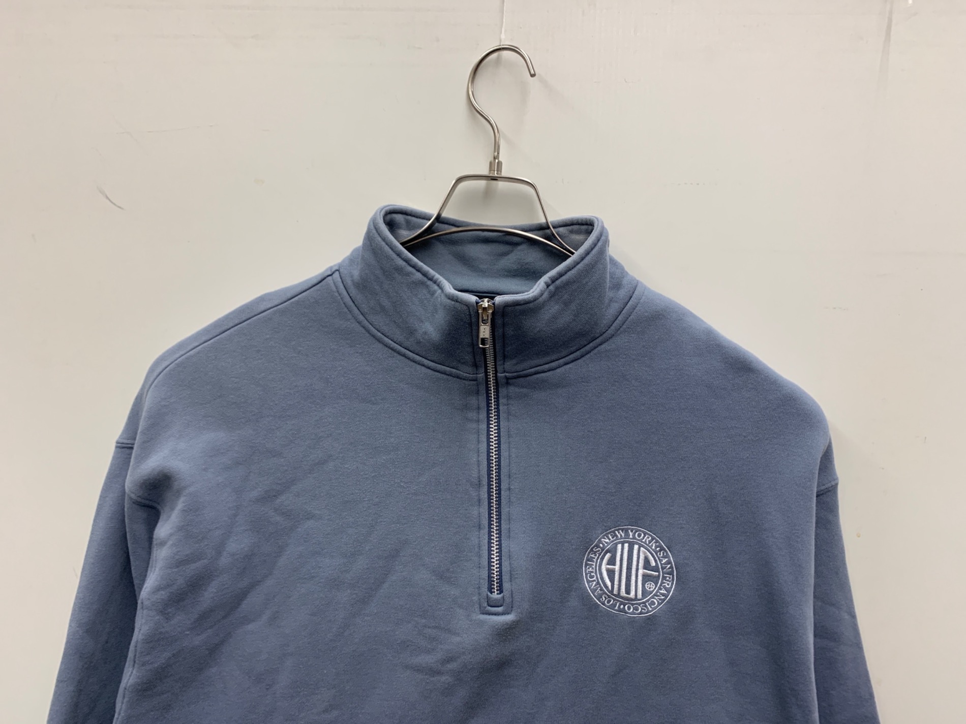 • HUF(ハフ)HUF (ハフ) ハーフジップスウェット ブルー サイズ:XLの古着・服飾アイテム 肩色褪せ有り
