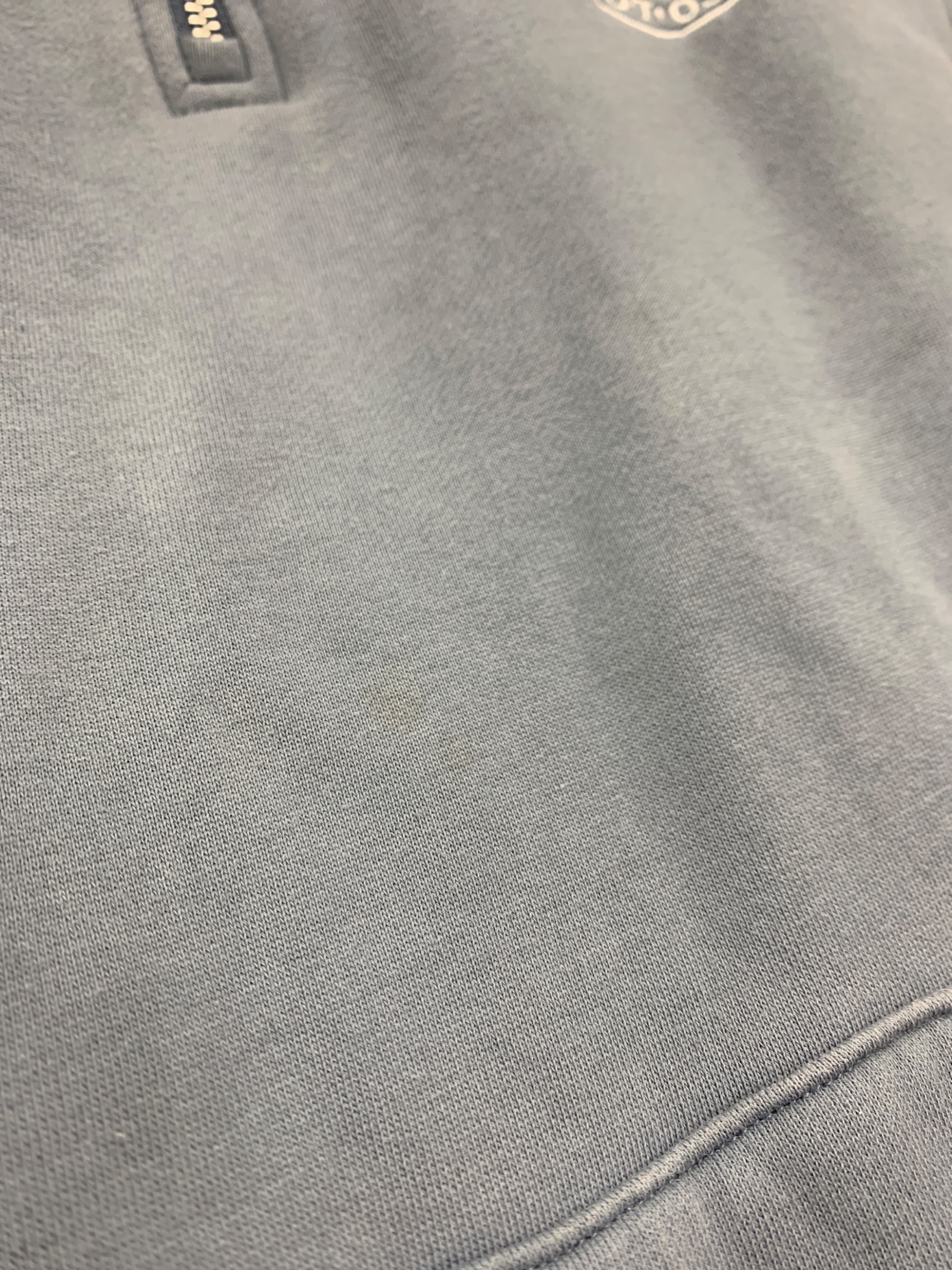 • HUF(ハフ)HUF (ハフ) ハーフジップスウェット ブルー サイズ:XLの古着・服飾アイテム 右袖汚れ有り