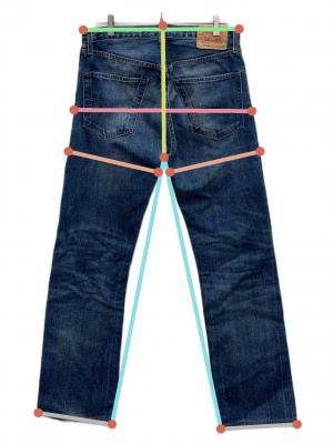 ウエスト周り約85cm ヒップ周り約102.2cm もも周り約56cm 裾周り約39.1cm 股上(後ろ)約36cm 股下(後ろ)約74cm