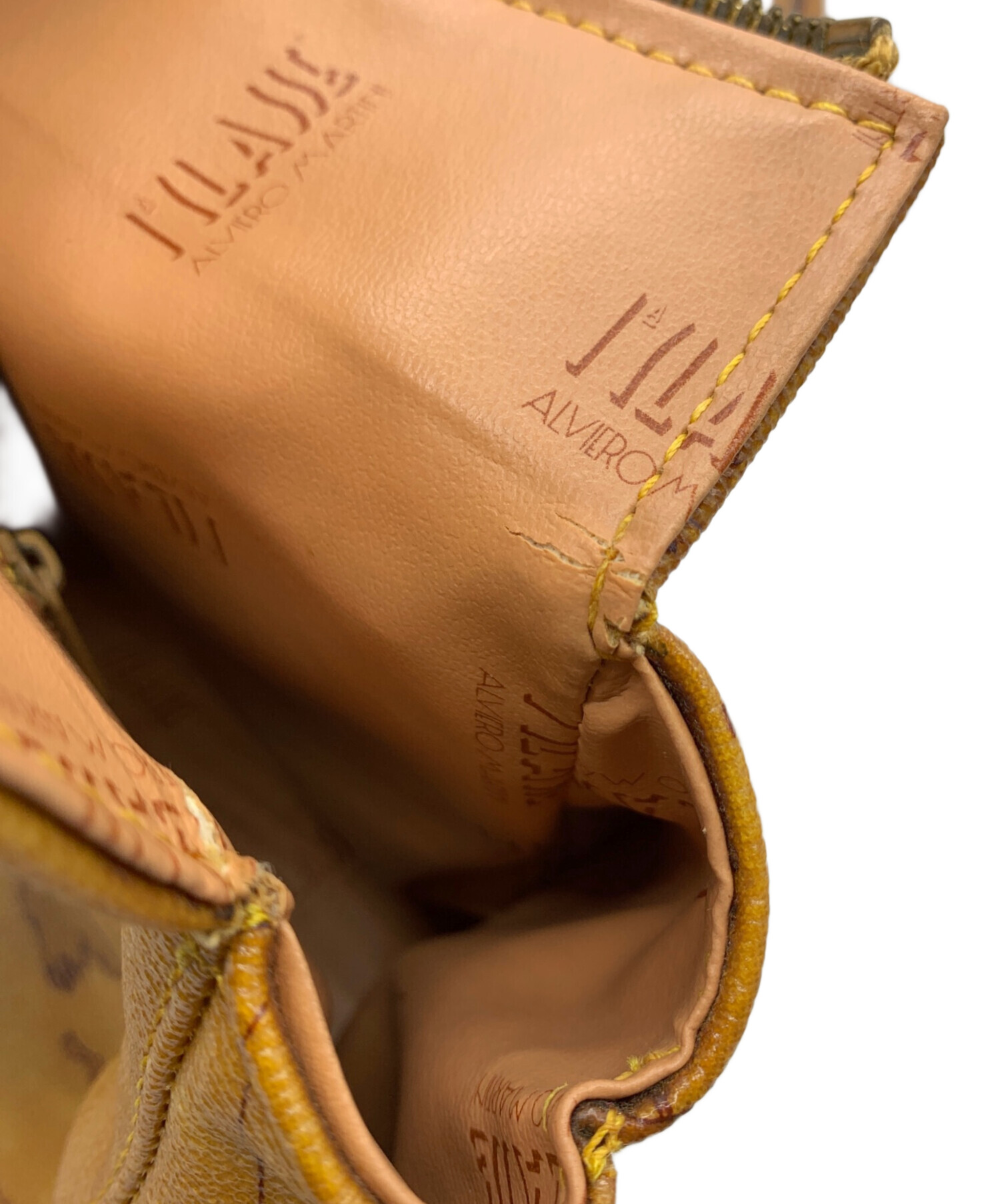 • PRIMA CLASSE(プリマクラッセ)PRIMA CLASSE (プリマクラッセ) トートバッグ ブラウンの古着・服飾アイテム 内側亀裂・ファスナー裏側サビ有