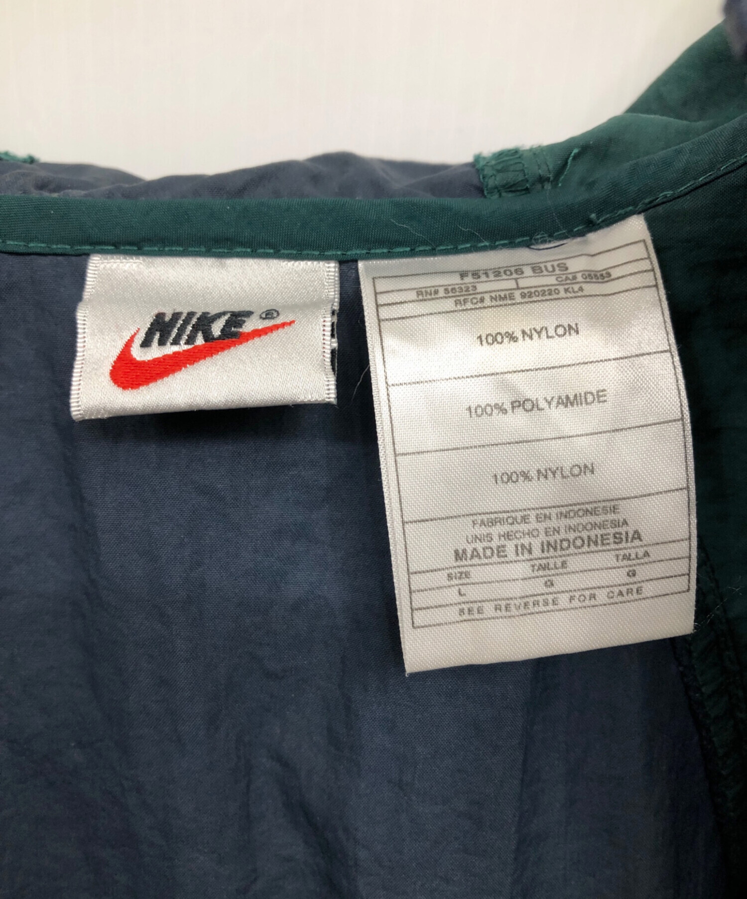| スタッフコメント | OLD NIKEのナイロンフーディになります。ビッグサイズのポケットとAIRのワンポイントが特徴的なフーディです。細かい切り返しや袖のポケットなど現代ではあまり見かけないディティールが90sらしいひと品。裏地なしのナイロン素材なのでお手入れも簡便でコーディネイトにも取り入れやすくなっています。お勧めです。 |