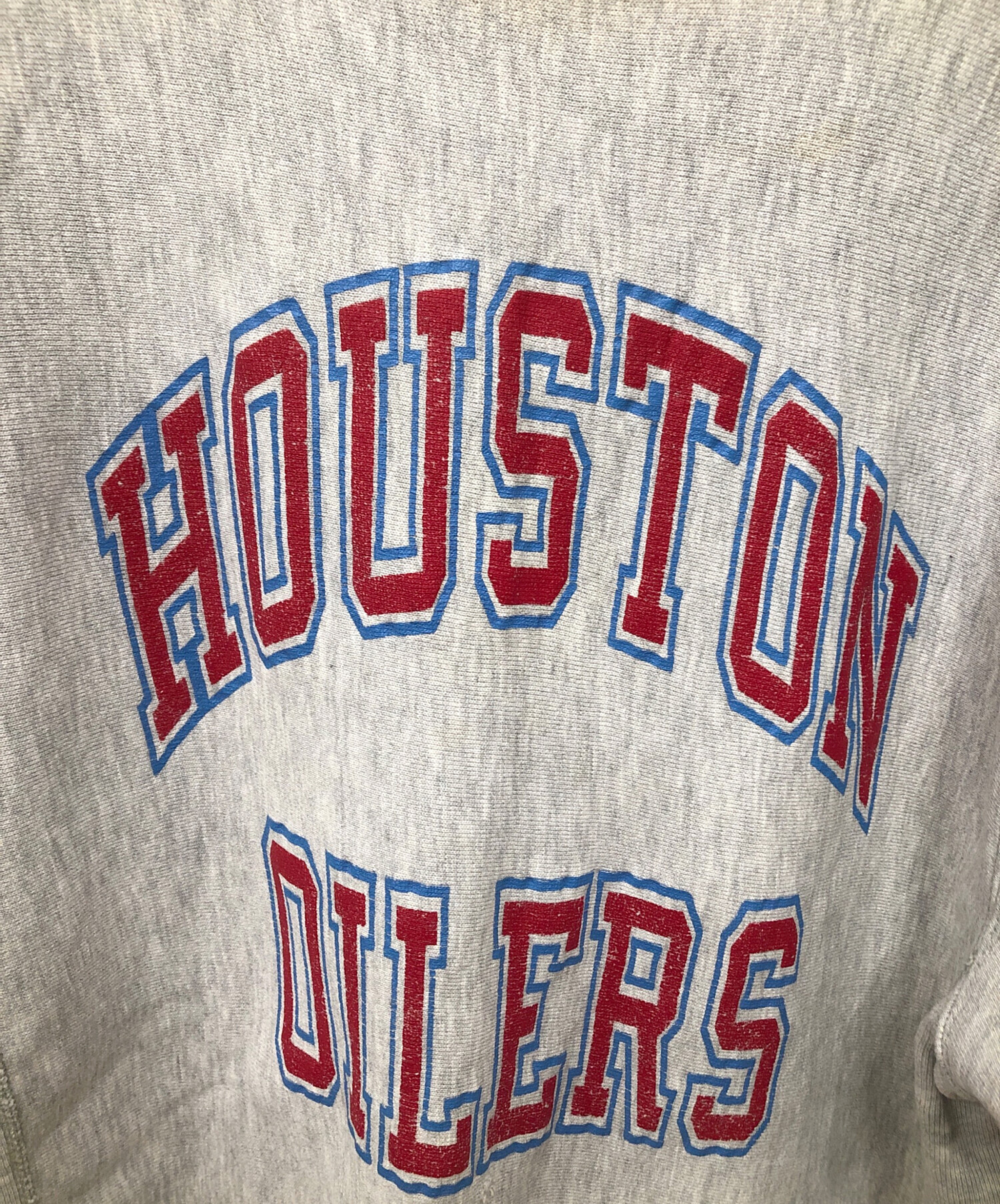 | スタッフコメント | Champion REVERSE WEAVEスウェットになります。HOUSTON OILERSはNFLと合併以前のAFL(アメリカンフットボールリーグ)に存在したプロのアメフトチームで、NFL合併後1996年まで同チーム名で活動していました(現在はテネシー・タイタンズ)。90s推定のボディですので、同チーム最後の数年内に作られている珍しい柄となっています。 |