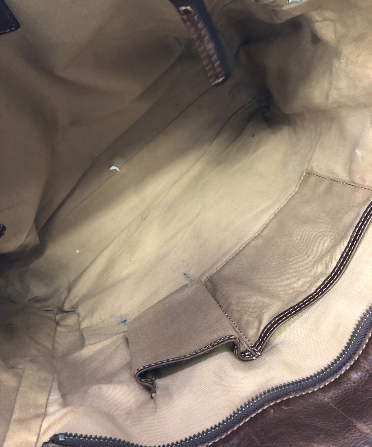 目立つシミや汚れ、におい等がある場合は商品画像や説明文にて極力表記させていただいておりますが、中古品という商品の特性上、全ての瑕疵や不備、洋服直し箇所を撮影・記載をすることは難しくなっております。また、ほとんどのアイテムは店頭と併売しておりますため、出品掲載時からコンディションが変動している場合もございます。あらかじめご了承くださいませ。