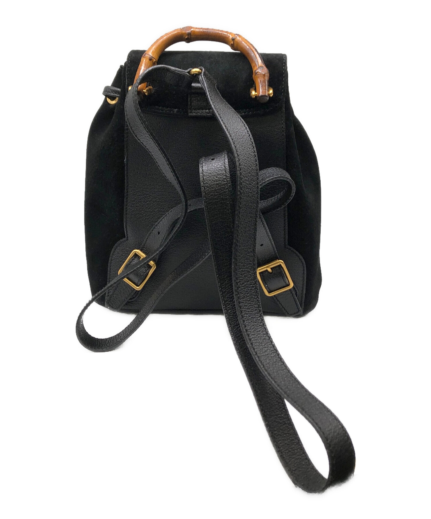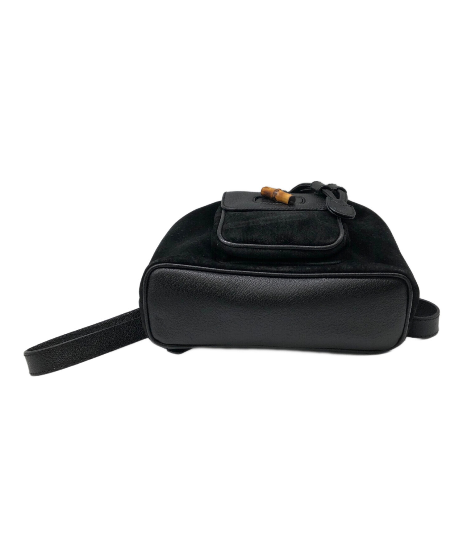 | スタッフコメント | GUCCIよりバンブーミニリュックになります。ロゴなどが控えめなシックなデザインですが、使用する素材は共にGUCCIを象徴するピッグスキン(ピッグスエード/猪革)とバンブー素材。ベーシックな形と黒一色な分、バンブーの存在感や毛穴のあるピッグスエードならではの表情が際立つ、素材を生かしたデザインが秀逸なひと品です。 |