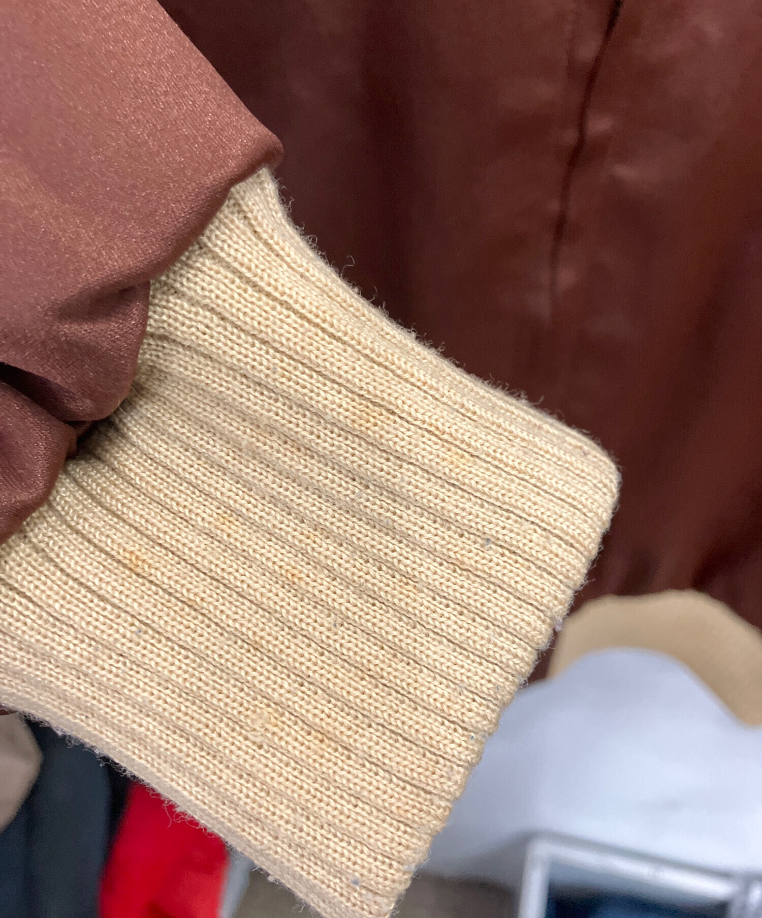 目立つシミや汚れ、におい等がある場合は商品画像や説明文にて極力表記させていただいておりますが、中古品という商品の特性上、全ての瑕疵や不備、洋服直し箇所を撮影・記載をすることは難しくなっております。また、ほとんどのアイテムは店頭と併売しておりますため、出品掲載時からコンディションが変動している場合もございます。あらかじめご了承くださいませ。