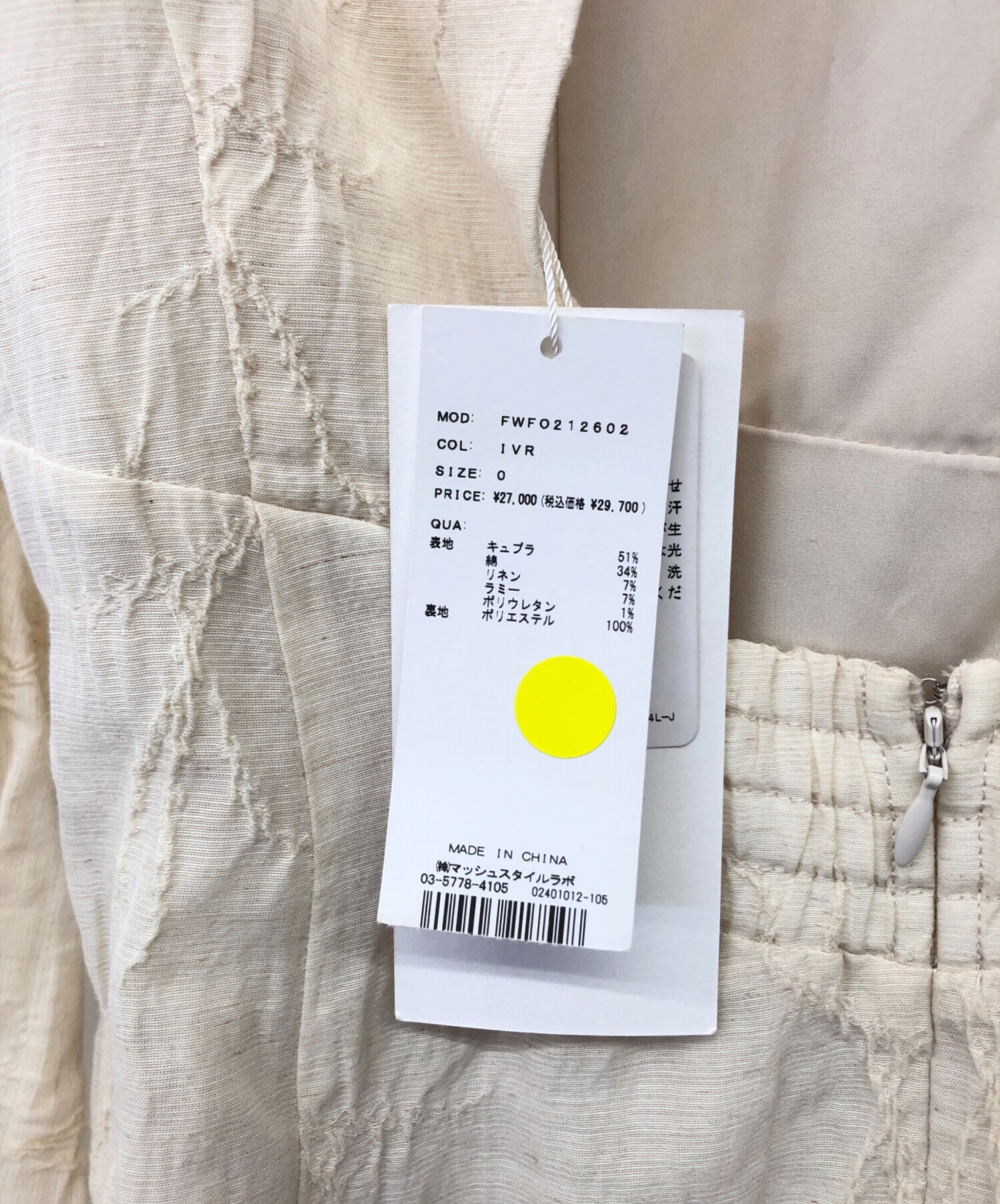 タグ表記サイズ:0( 参考サイズ:FREE )