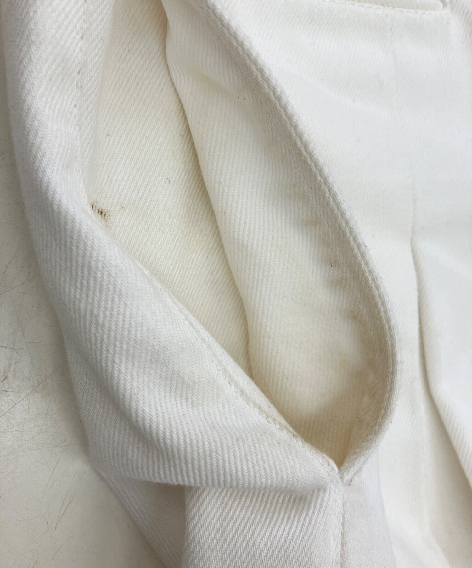 目立つシミや汚れ、におい等がある場合は商品画像や説明文にて極力表記させていただいておりますが、中古品という商品の特性上、全ての瑕疵や不備、洋服直し箇所を撮影・記載をすることは難しくなっております。また、ほとんどのアイテムは店頭と併売しておりますため、出品掲載時からコンディションが変動している場合もございます。あらかじめご了承くださいませ。