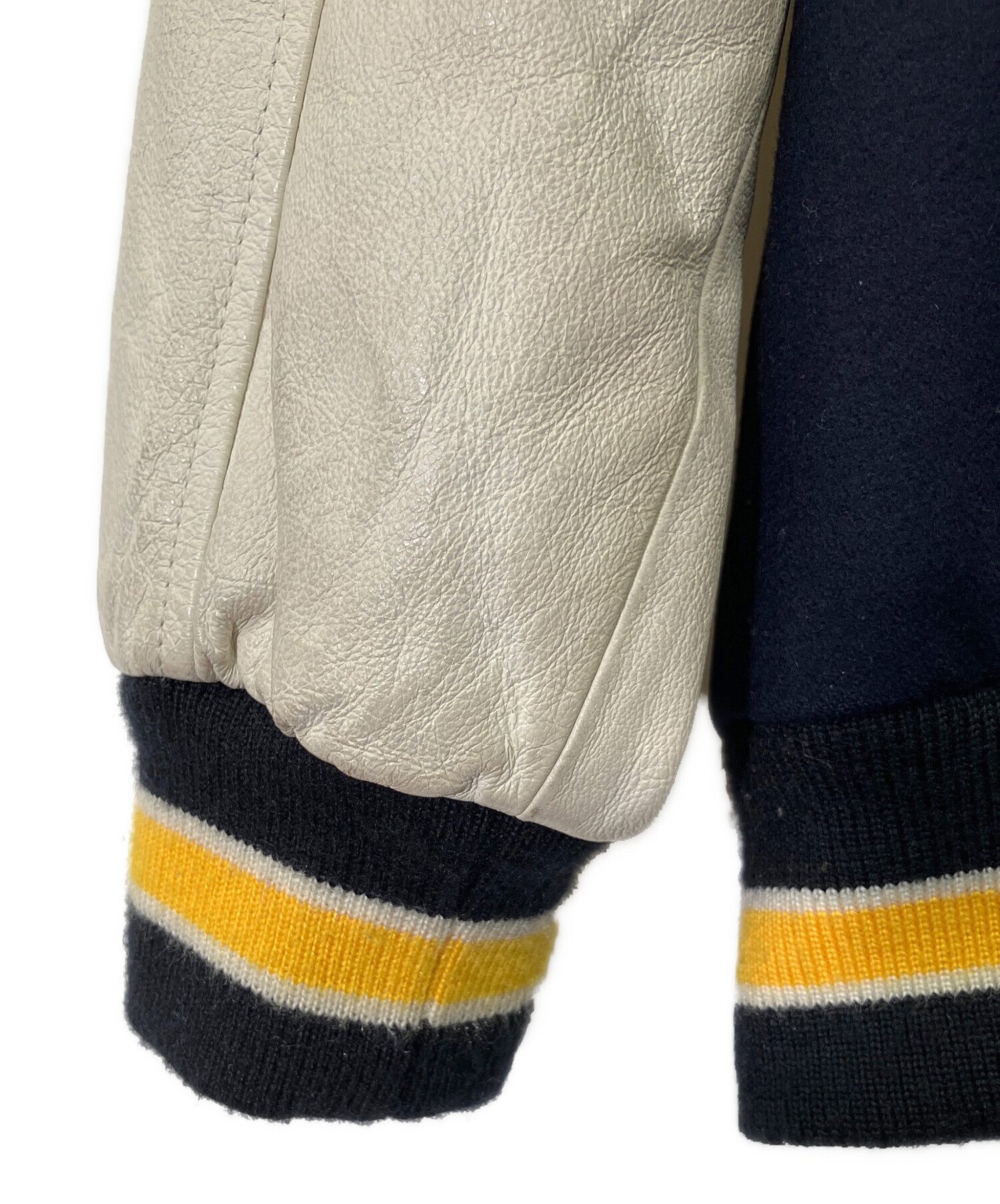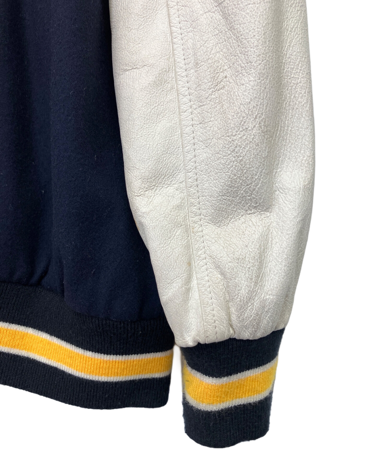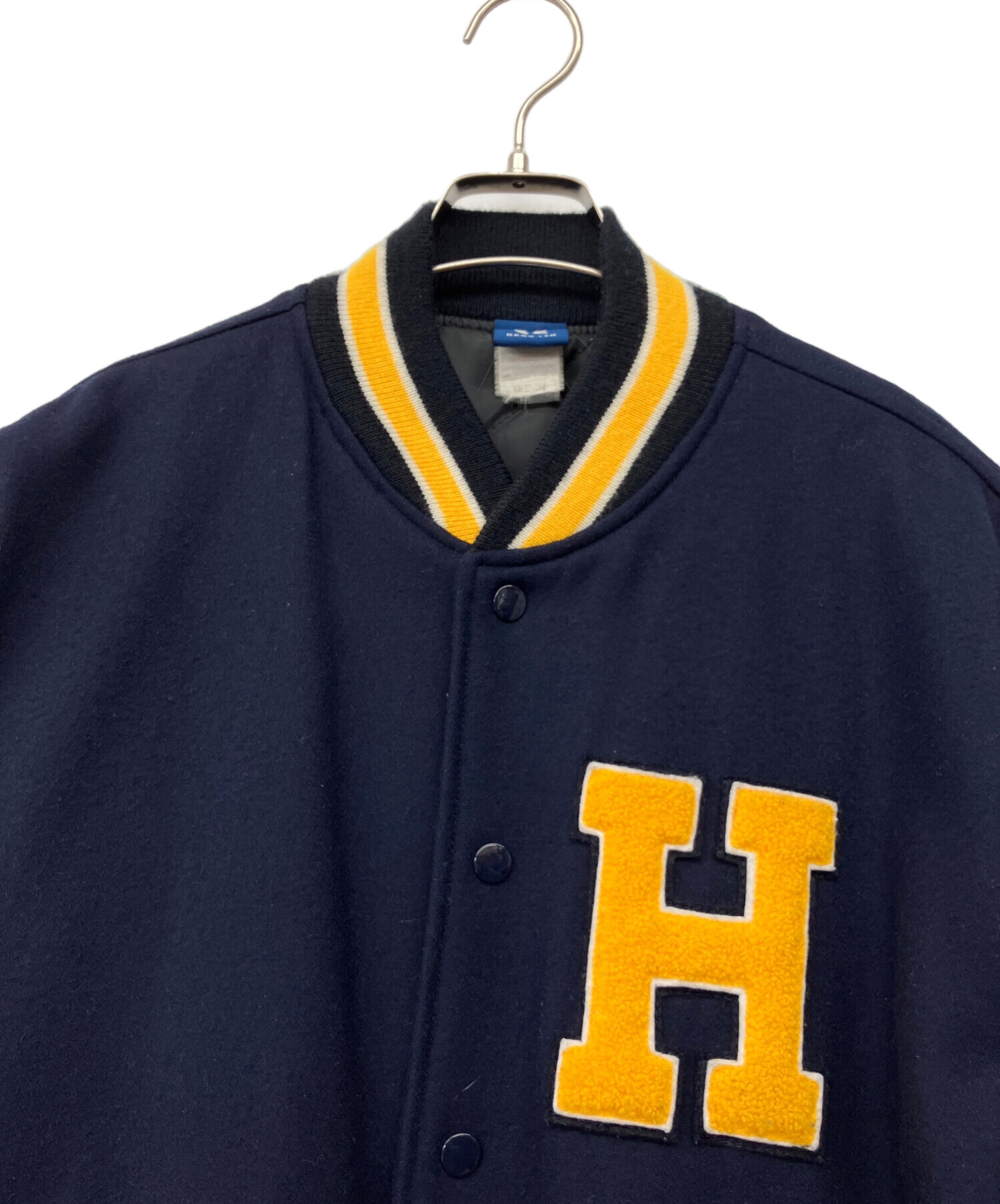 • HANG TEN(ハンテン)HANG TEN (ハンテン) 90's レターマンジャケット ネイビー×イエロー サイズ:Mの古着・服飾アイテム 汚れ有
