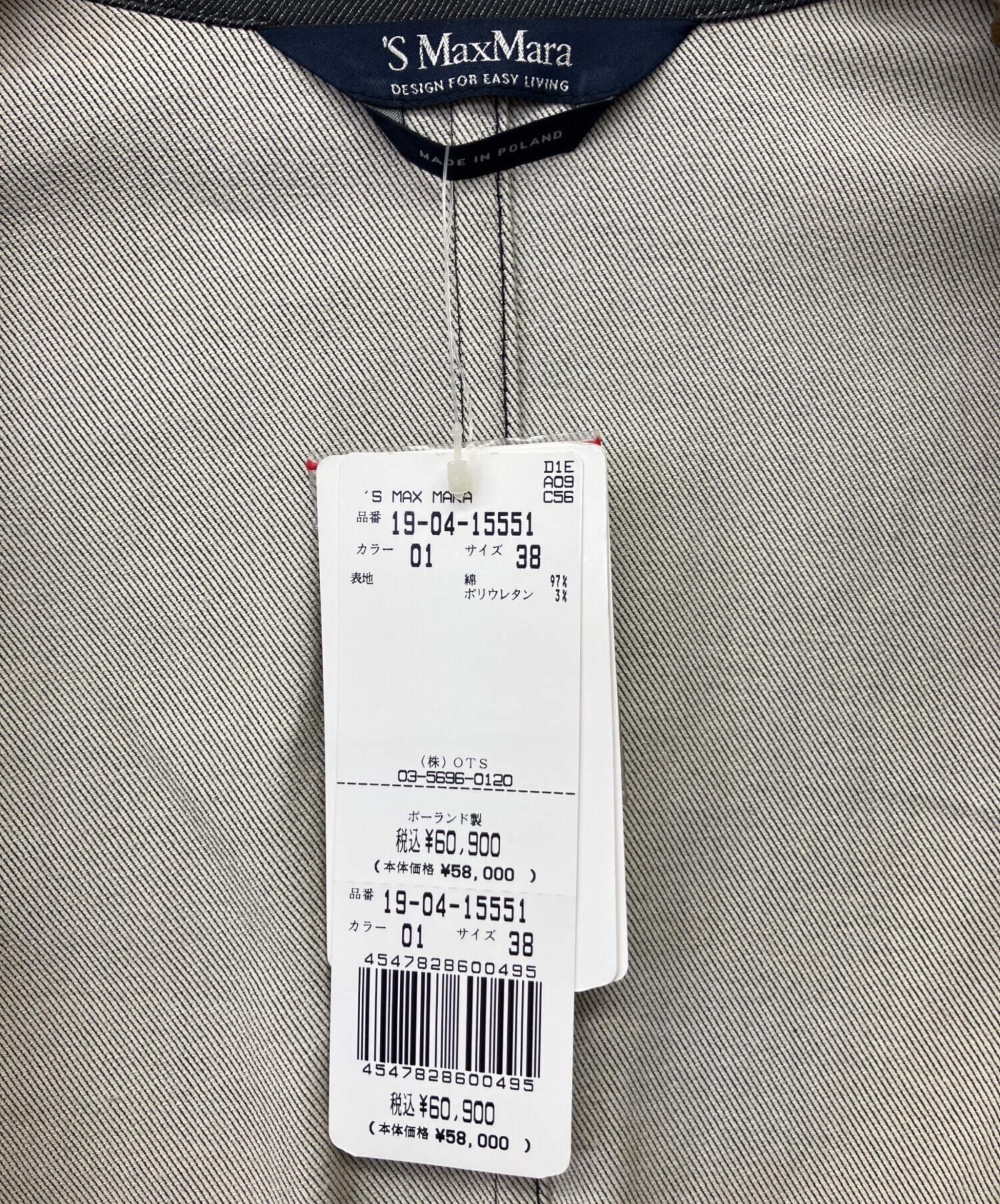 タグ表記サイズ:38( 参考サイズ:S )