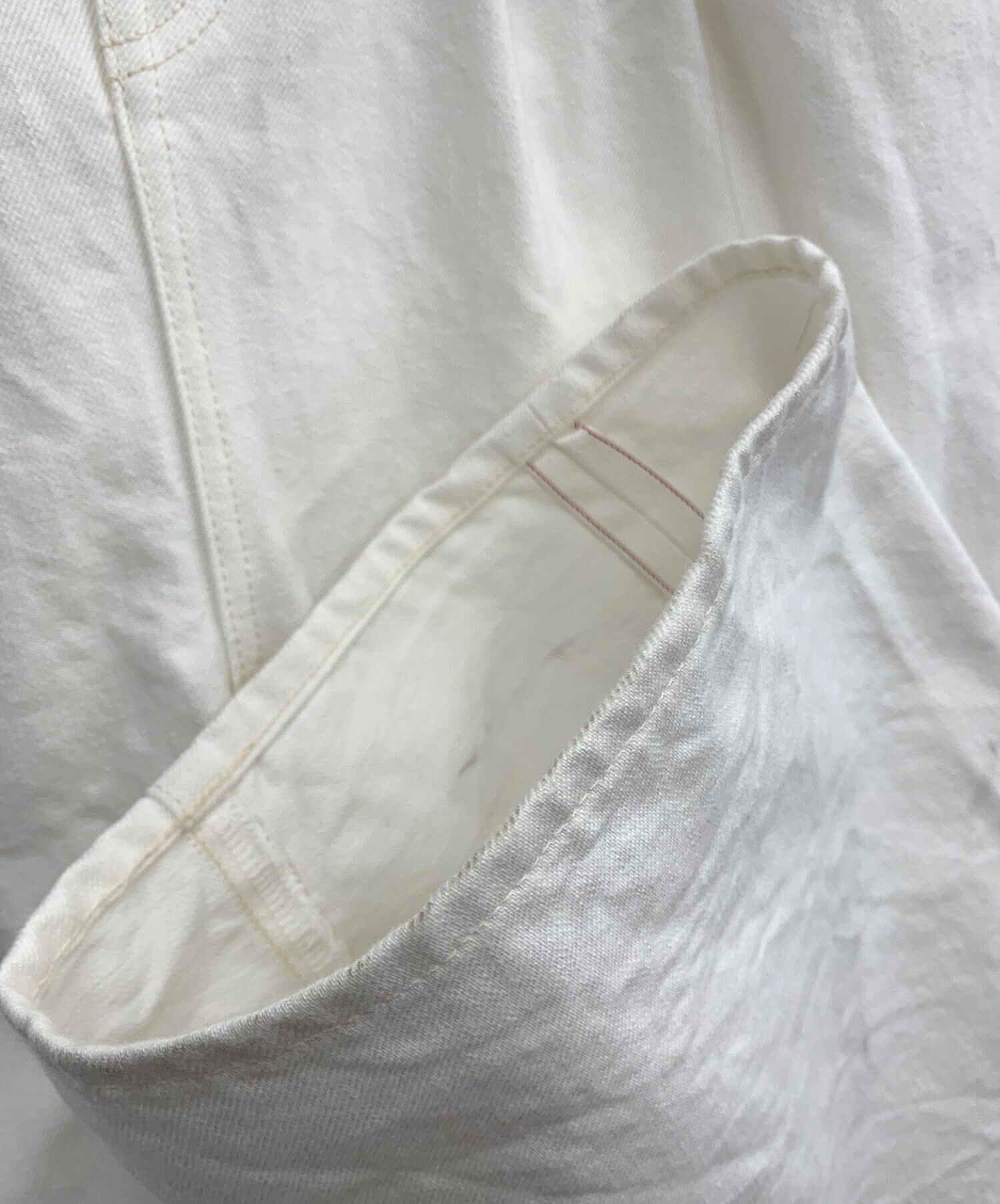 | 状態 | こちらの商品は中古品の為、使用に伴いますキズ、汚れが各所に見受けられます。店頭にて展示販売を行っている為、記載に無いキズ、汚れが見受けられる場合がございます。 また、細部まで全ての状態を記載することは出来ませんので、中古品という事、程度の良いお品物では無いという事を予めご了承の上、ご購入お願い致します。 (右裾近く汚れ有。画像5参照。) (左足内側部分に染み有。画像6参照。) (裾部分に擦れ汚れ有。画像7.8参照。) (左裾部分にヨゴレ有。画像9参照。) ※シミ有 |