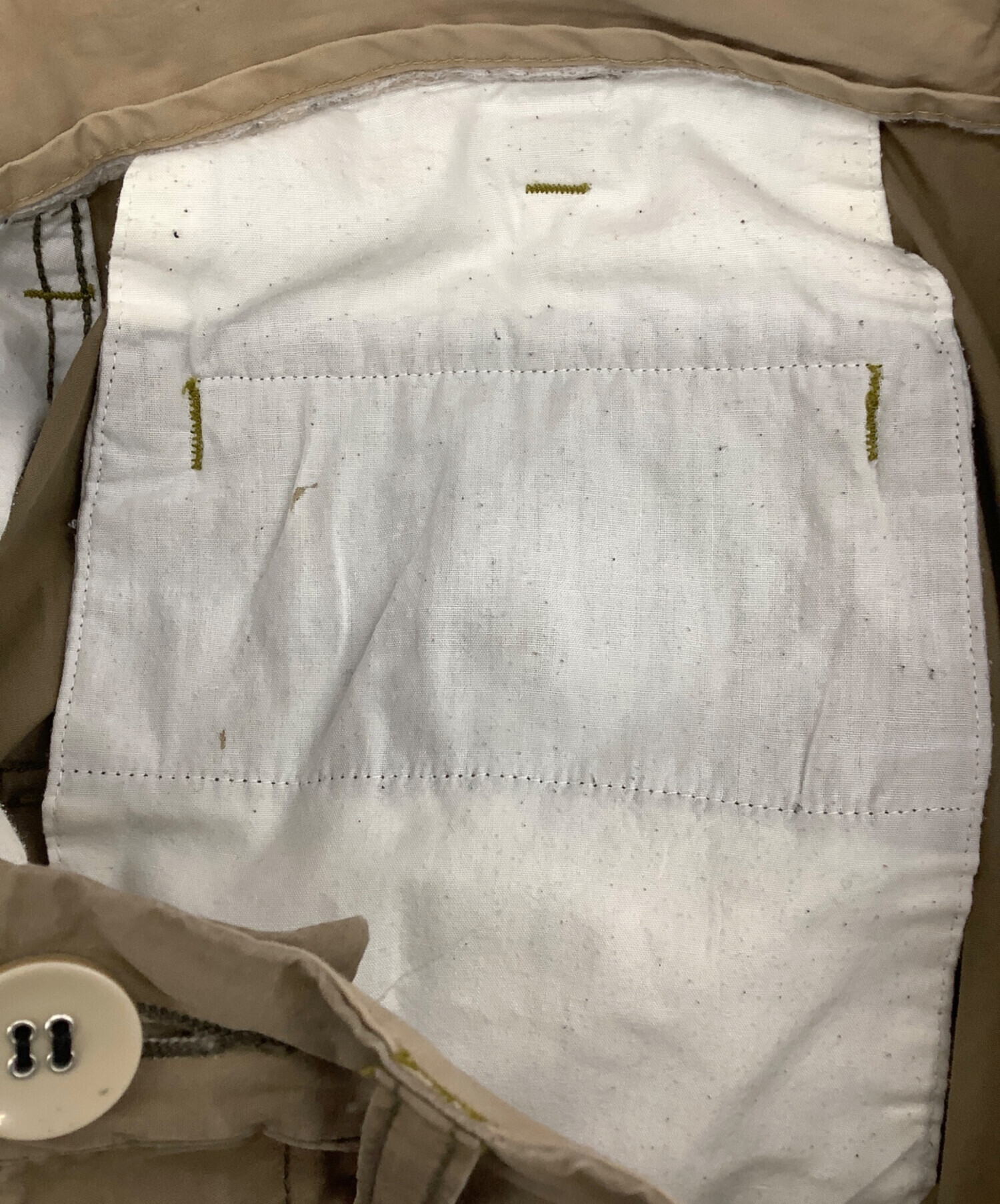 目立つシミや汚れ、におい等がある場合は商品画像や説明文にて極力表記させていただいておりますが、中古品という商品の特性上、全ての瑕疵や不備、洋服直し箇所を撮影・記載をすることは難しくなっております。また、ほとんどのアイテムは店頭と併売しておりますため、出品掲載時からコンディションが変動している場合もございます。あらかじめご了承くださいませ。
