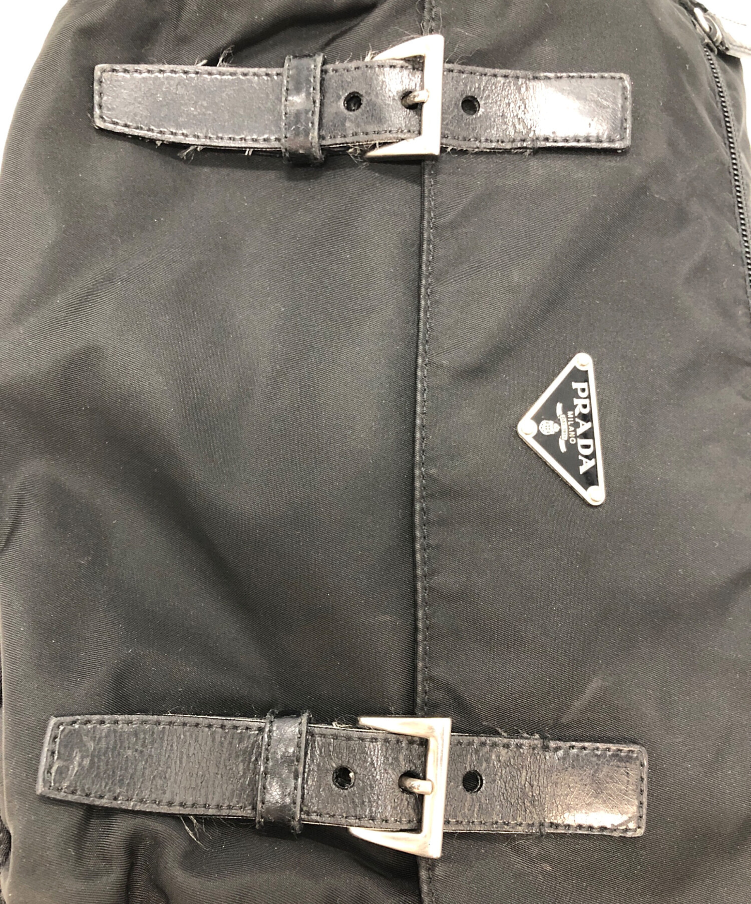 • PRADA(プラダ)PRADA (プラダ) ナイロンメッセンジャーバッグ ブラックの古着・服飾アイテム ホツレ有