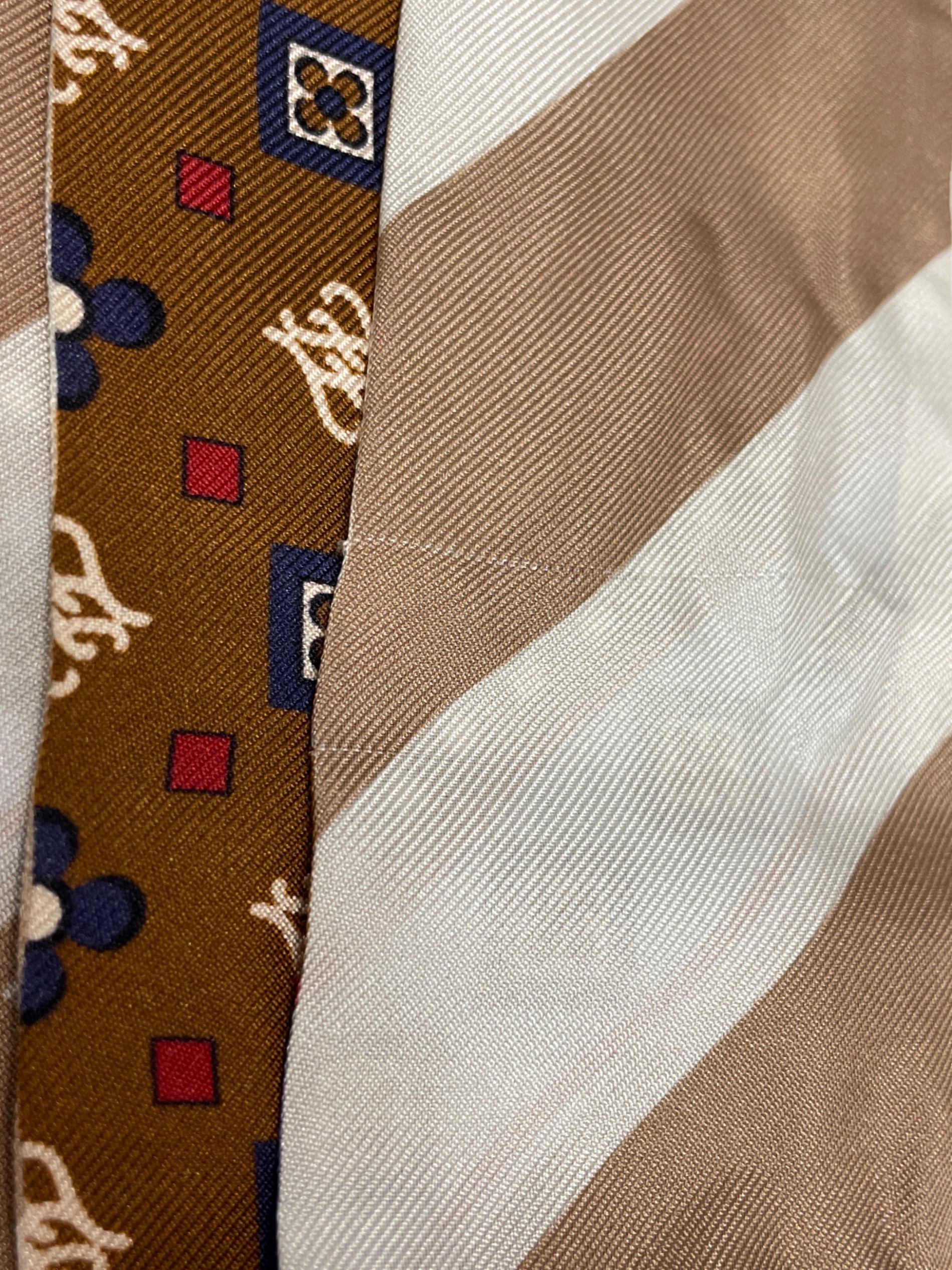 | スタッフコメント | 完全に同じFを逆さに組み合わせたFFロゴがデザインの中に添えられたハンディスカーフ。イタリックス(斜体文字)が詩的な印象を感じさせるFFロゴは1981年にカール・ラガーフェルド(Karl Lagerfeld)がデザイン。表裏で違ったデザインが施されたスカーフはバッグのアクセントなど多様に楽しめるアイテム。 |
