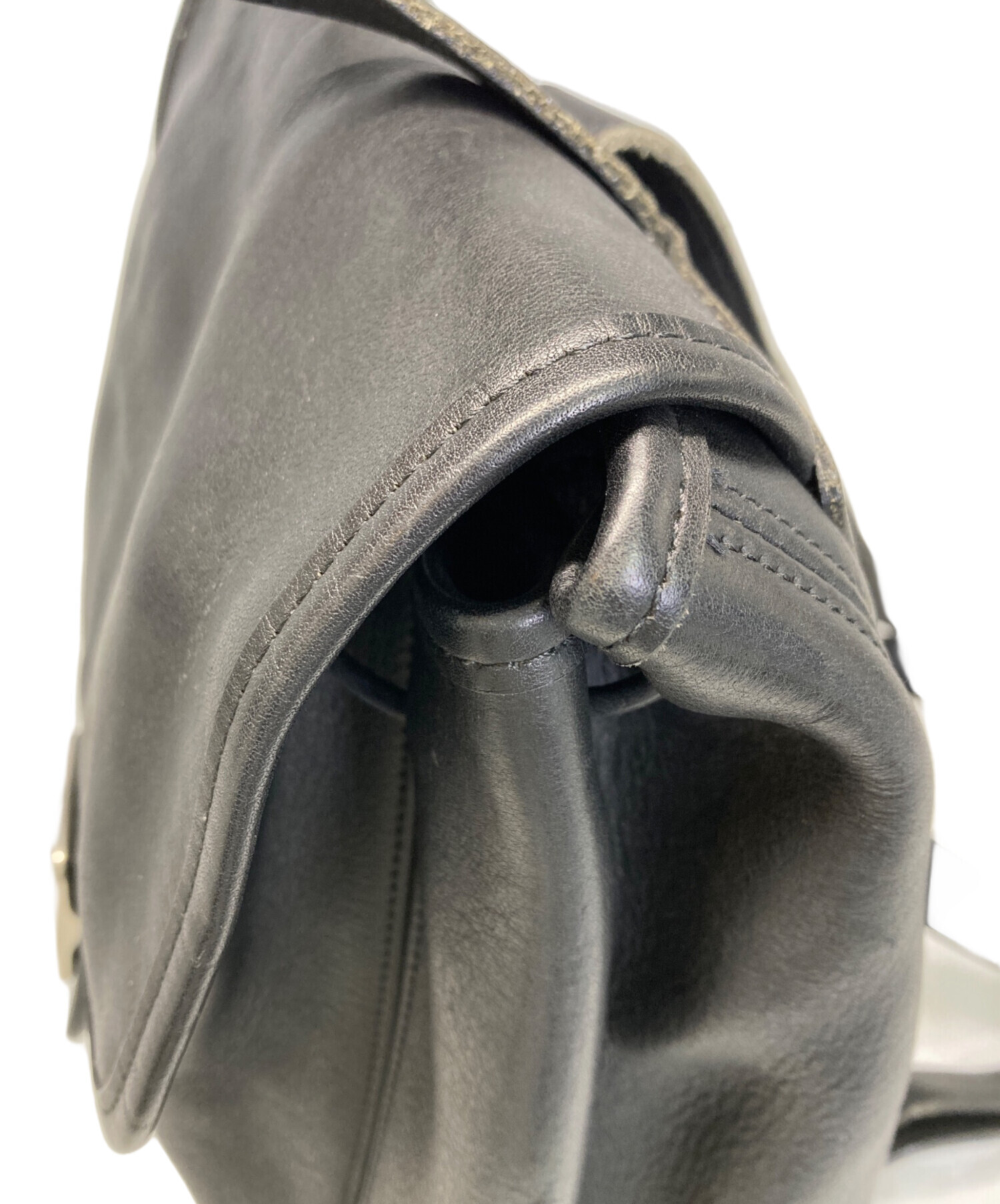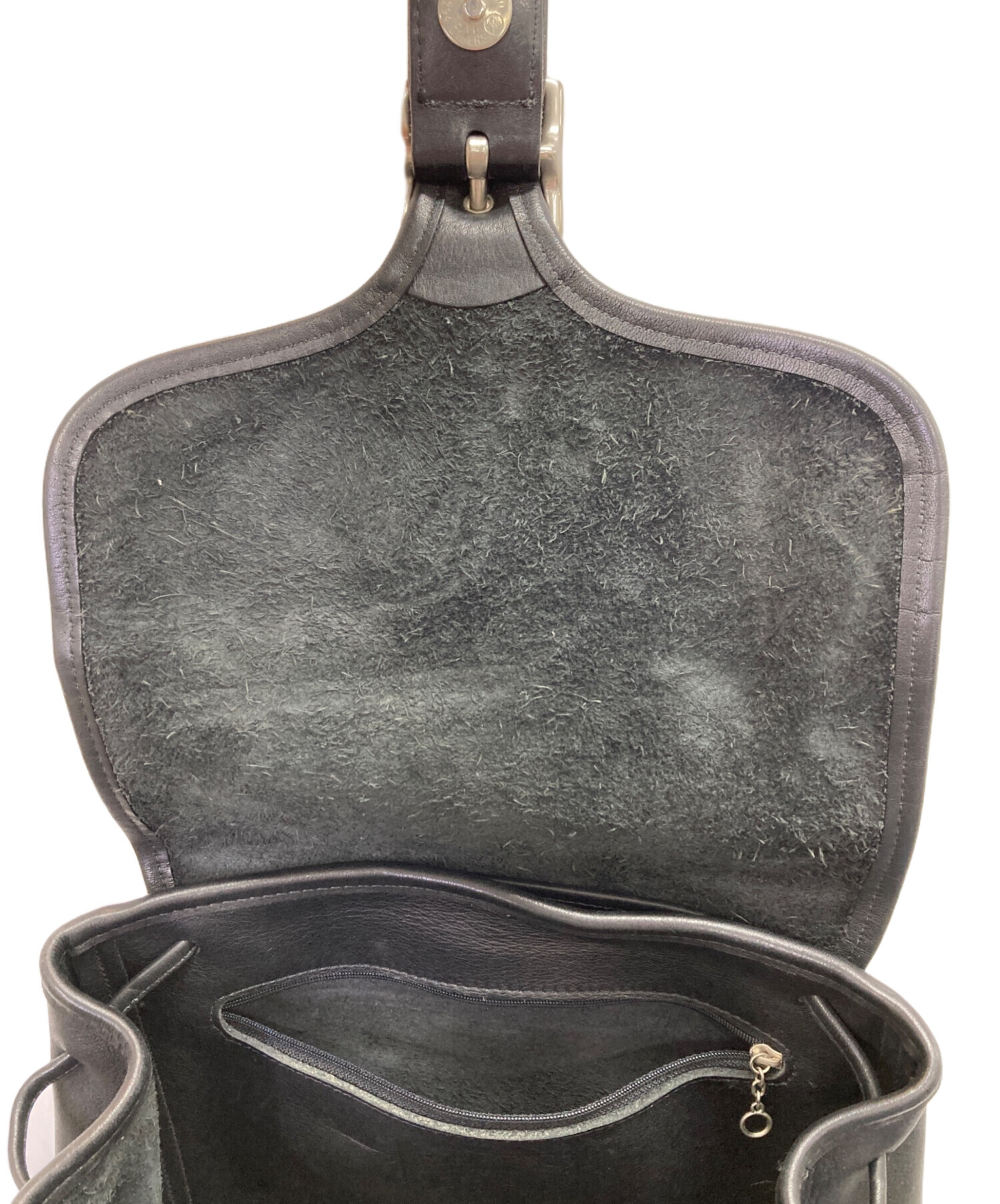 • COACH(コーチ)COACH (コーチ) レザーリュック ブラックの古着・服飾アイテム フラップ内側、毛羽立ちあり。
