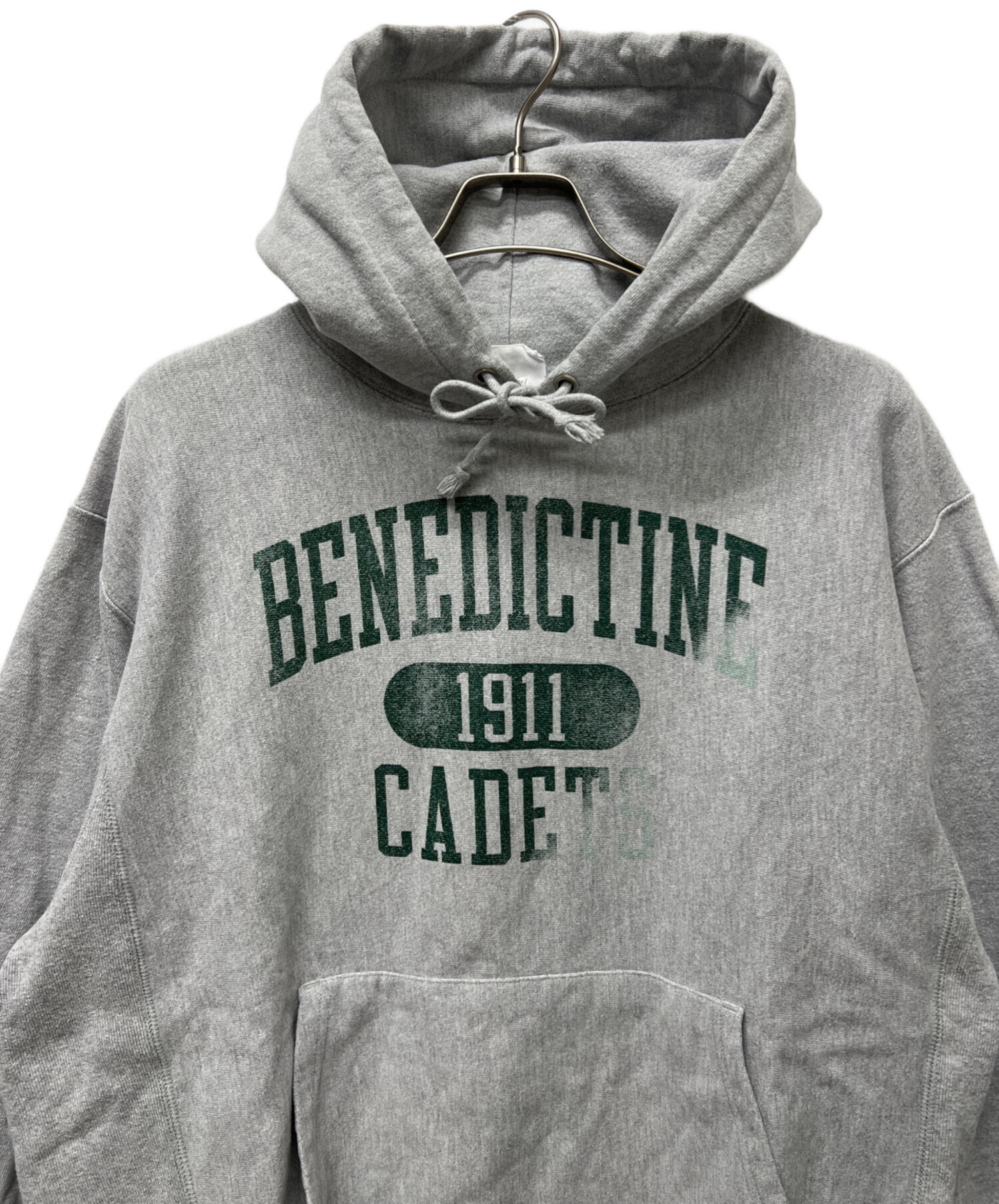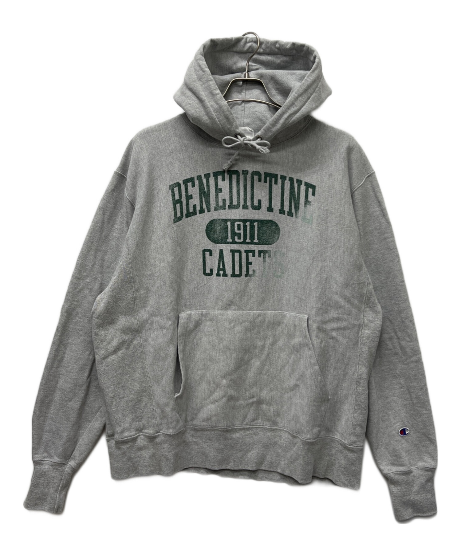• Champion REVERSE WEAVE(チャンピオン リバース ウィーブ)Champion REVERSE WEAVE (チャンピオン リバース ウィーブ) プルオーバーパーカー グレー サイズ:2XLの古着・服飾アイテム プリントかすれ