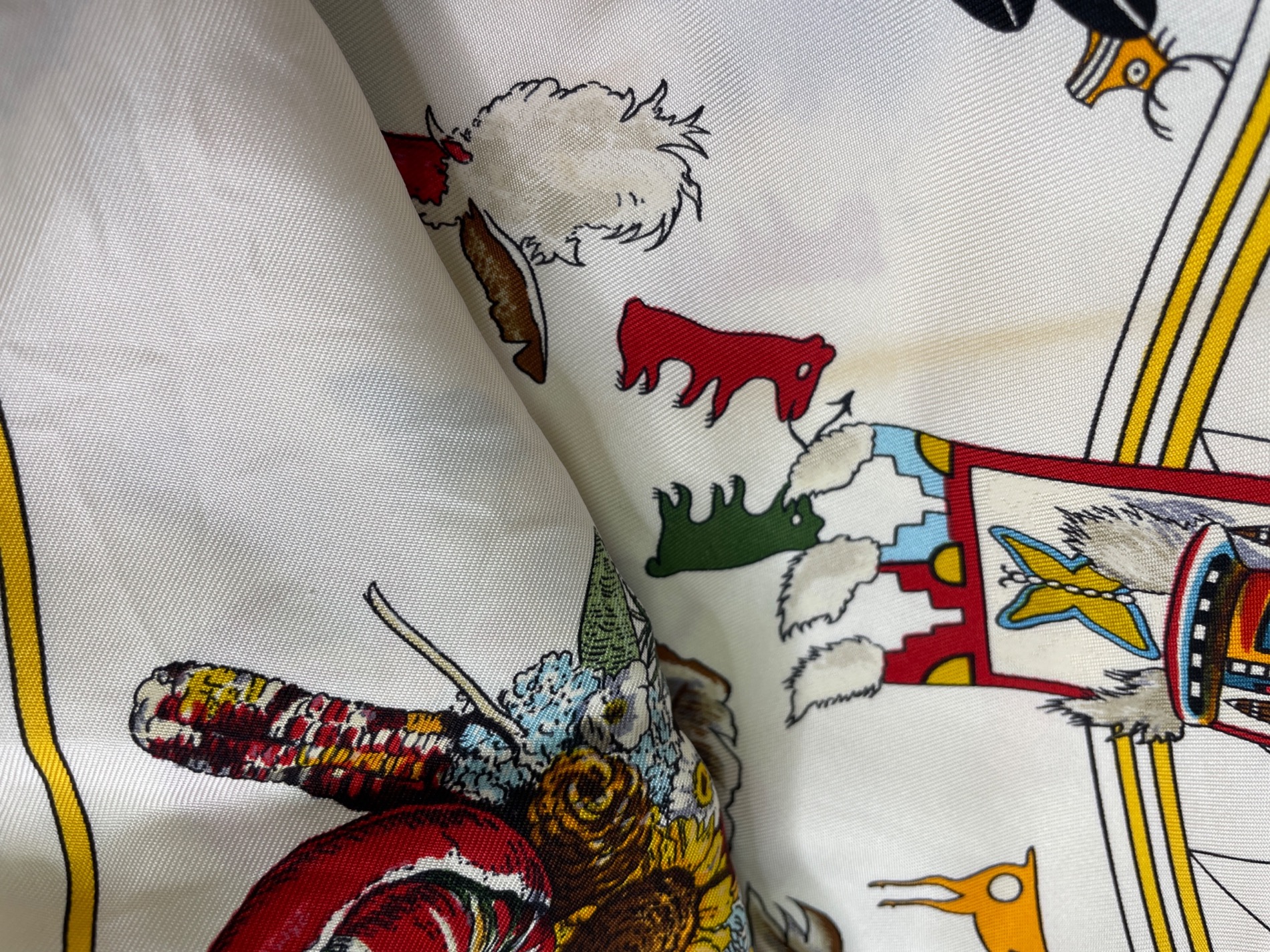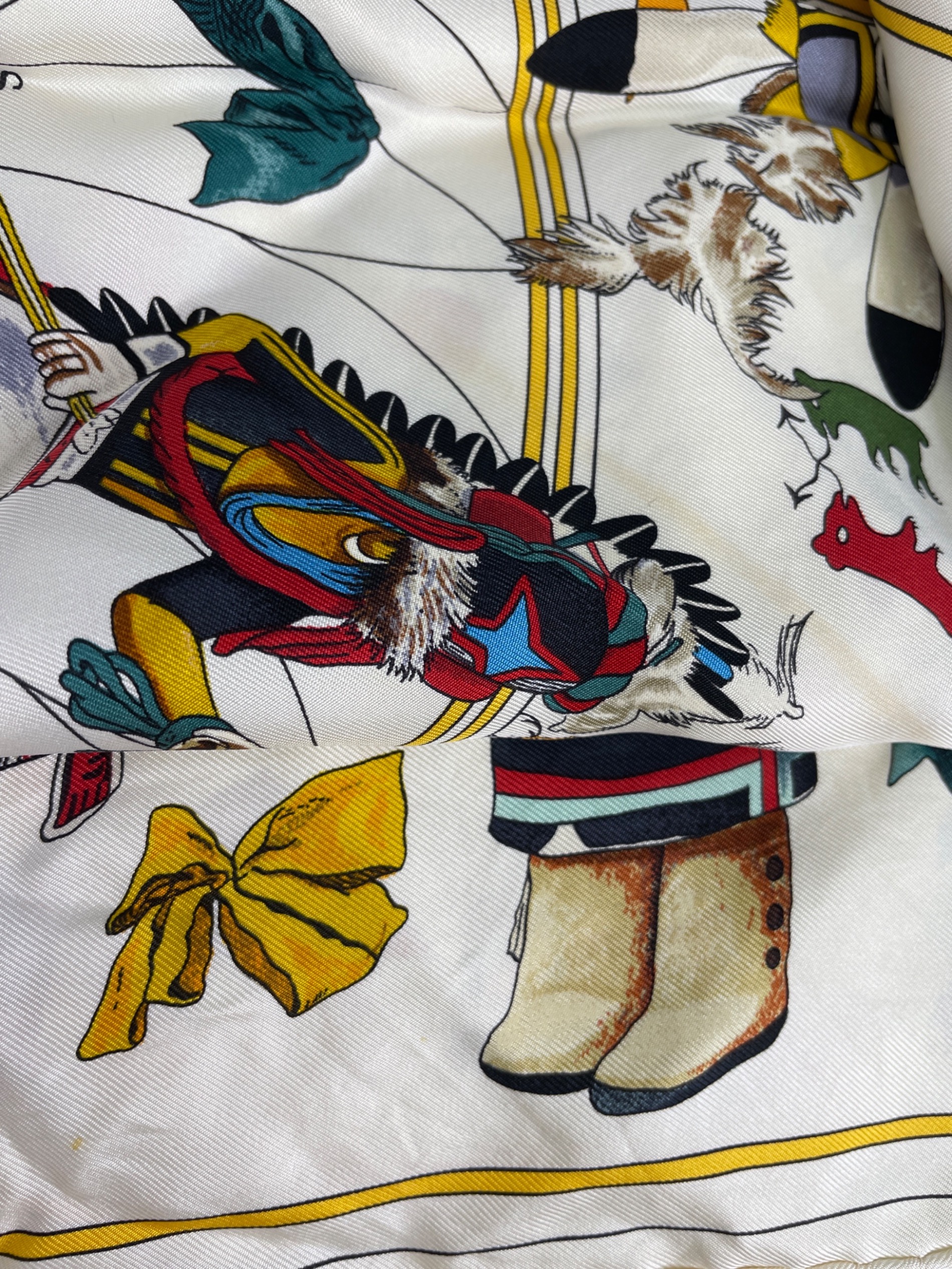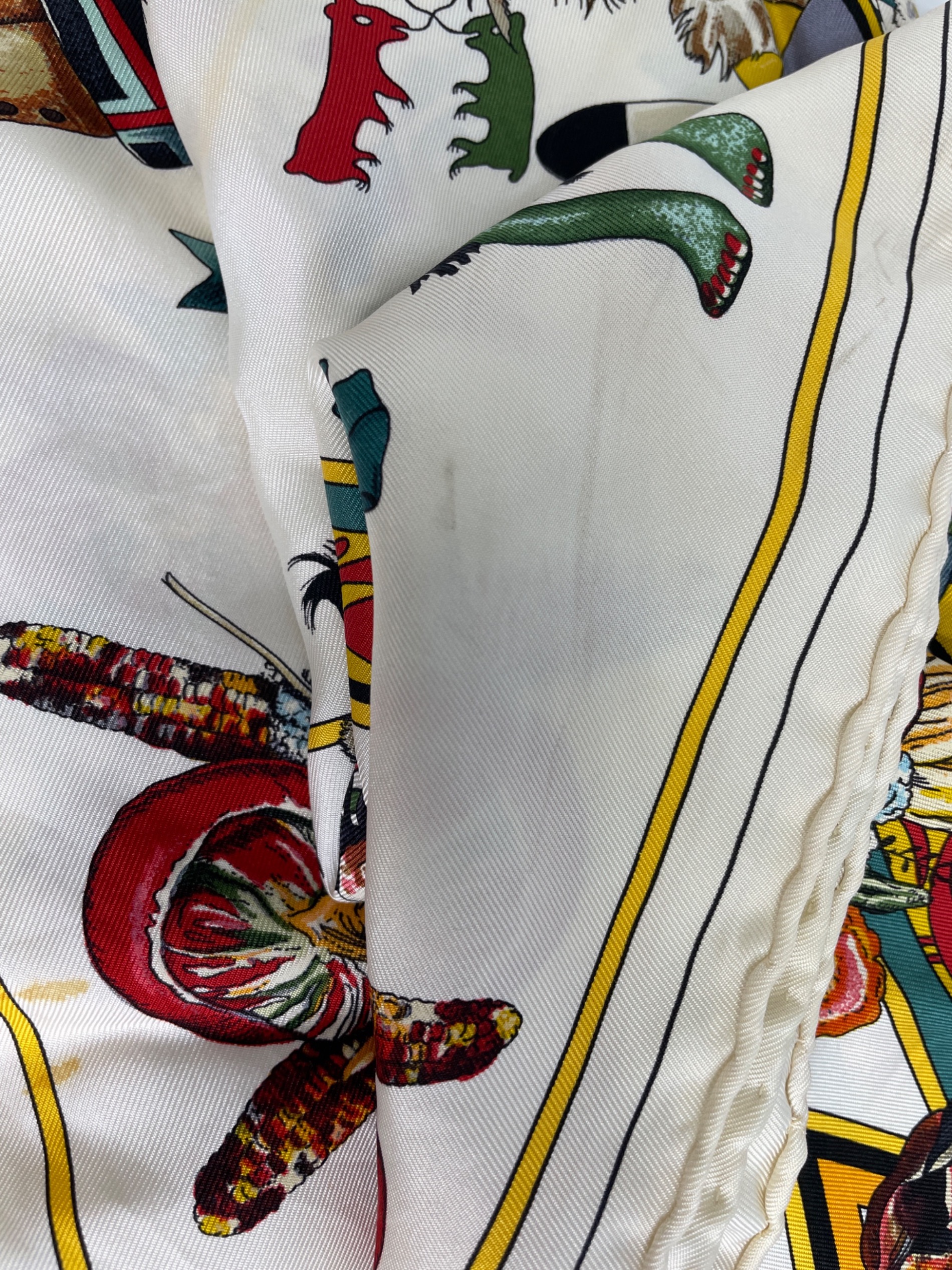 • HERMES(エルメス)HERMES (エルメス) シルクスカーフ ホワイトの古着・服飾アイテム 汚れ、糸の出ている箇所あり。