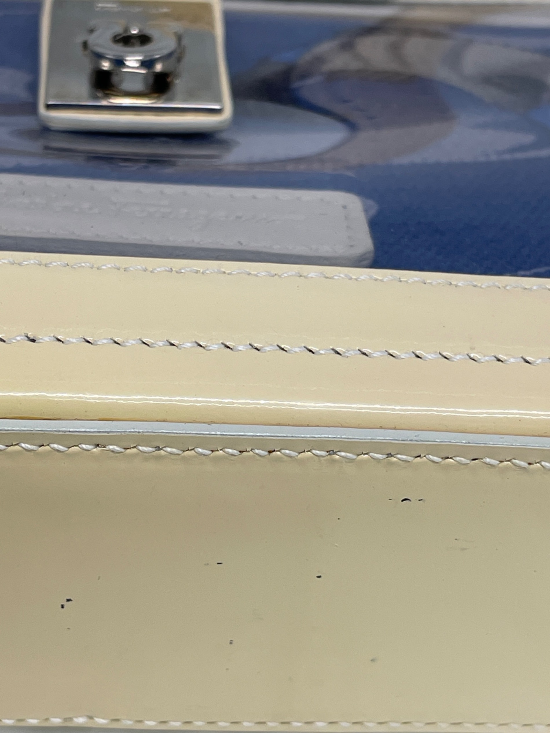 | スタッフコメント | Salvatore Ferragamoのアイコン的なガンチーニ金具がアクセントになったクリア素材とパテントレザーで仕上げたバッグ。内布はマグネット式でスムースに開け閉めでき、小ぶりながら使いやすいアイテム。 |