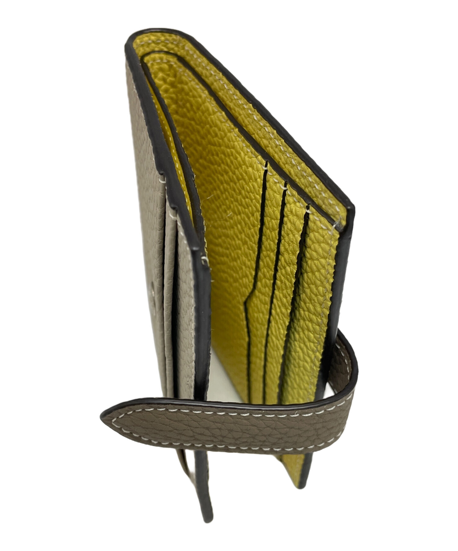 | スタッフコメント | 薄めの設計でありながら、お札を余裕を持って収納でき、カード収納も充実した二つ折り財布。バイカラーが覗く遊びごころのあるデザインに細やかなステッチが施されたエレガントな印象に導く逸品。 |