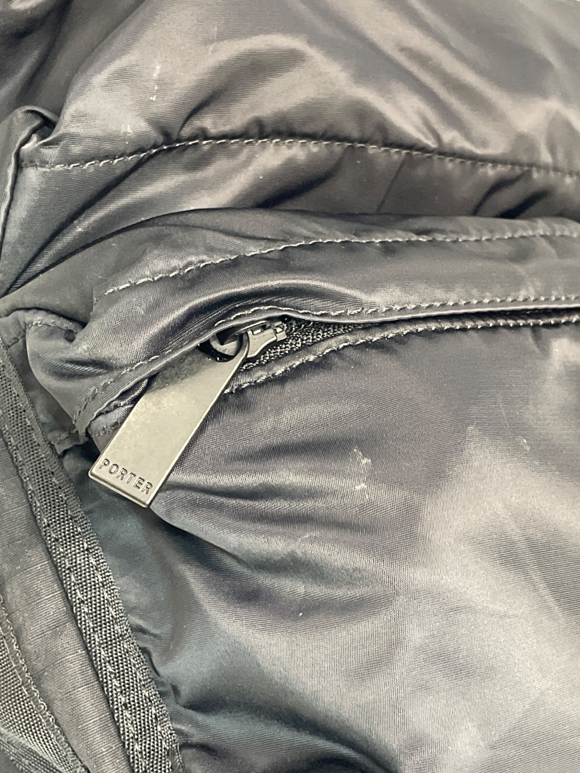 | スタッフコメント | 光沢のあるナイロンと摩擦、引き裂きに耐性のあナイロンを使い分けたショルダーバッグ。ディテールに差があることでコントラストが生まれ、手触りの違いが感じられます。フロントにはマチのあるポケットがあり、使い勝手良くものを整理収納できます。サイドにはミリタリーから来ているハトメが付いており、ポーターの文字がさりげないアクセントに。 |