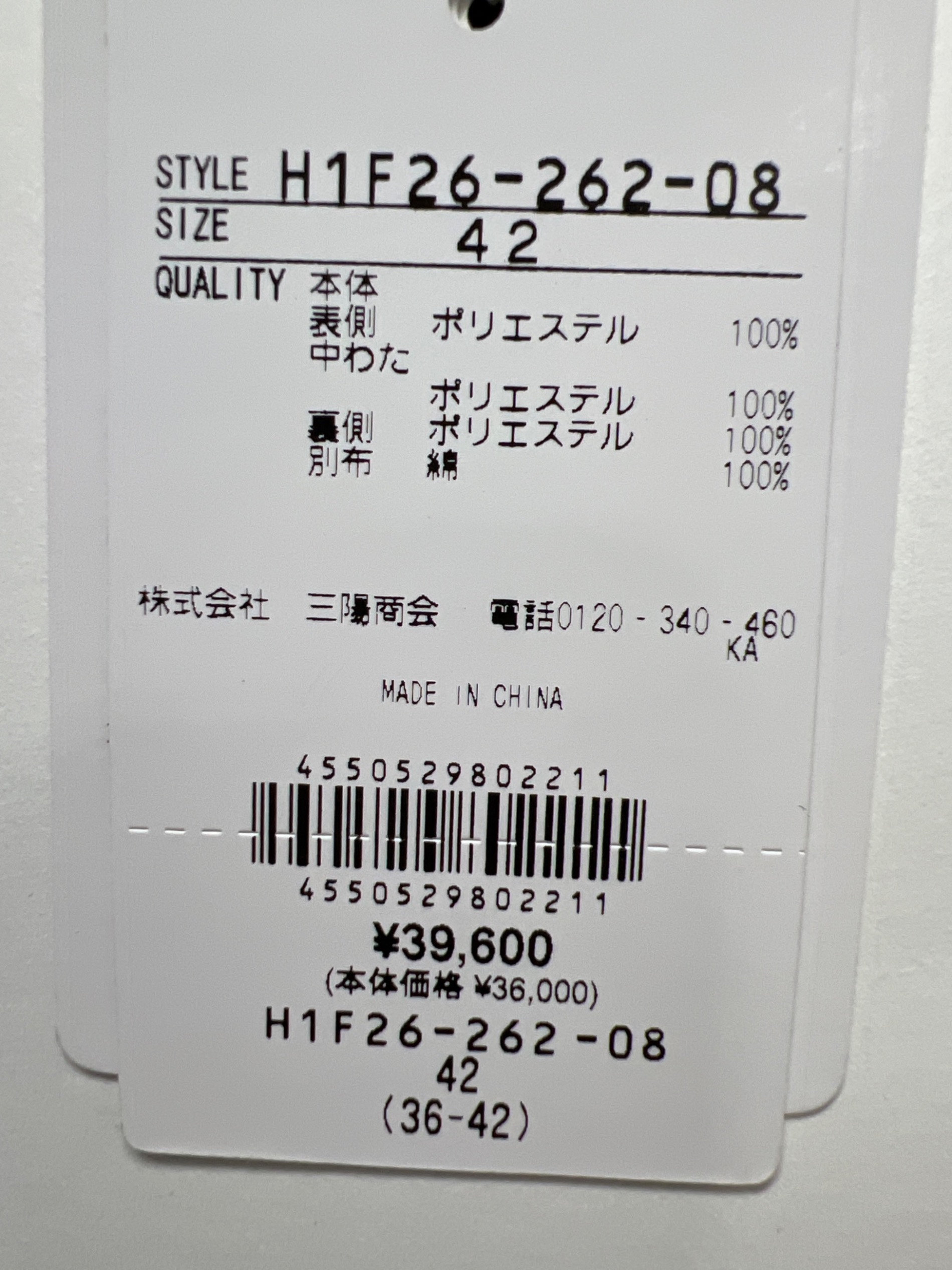 タグ表記サイズ:42( 参考サイズ:XL )