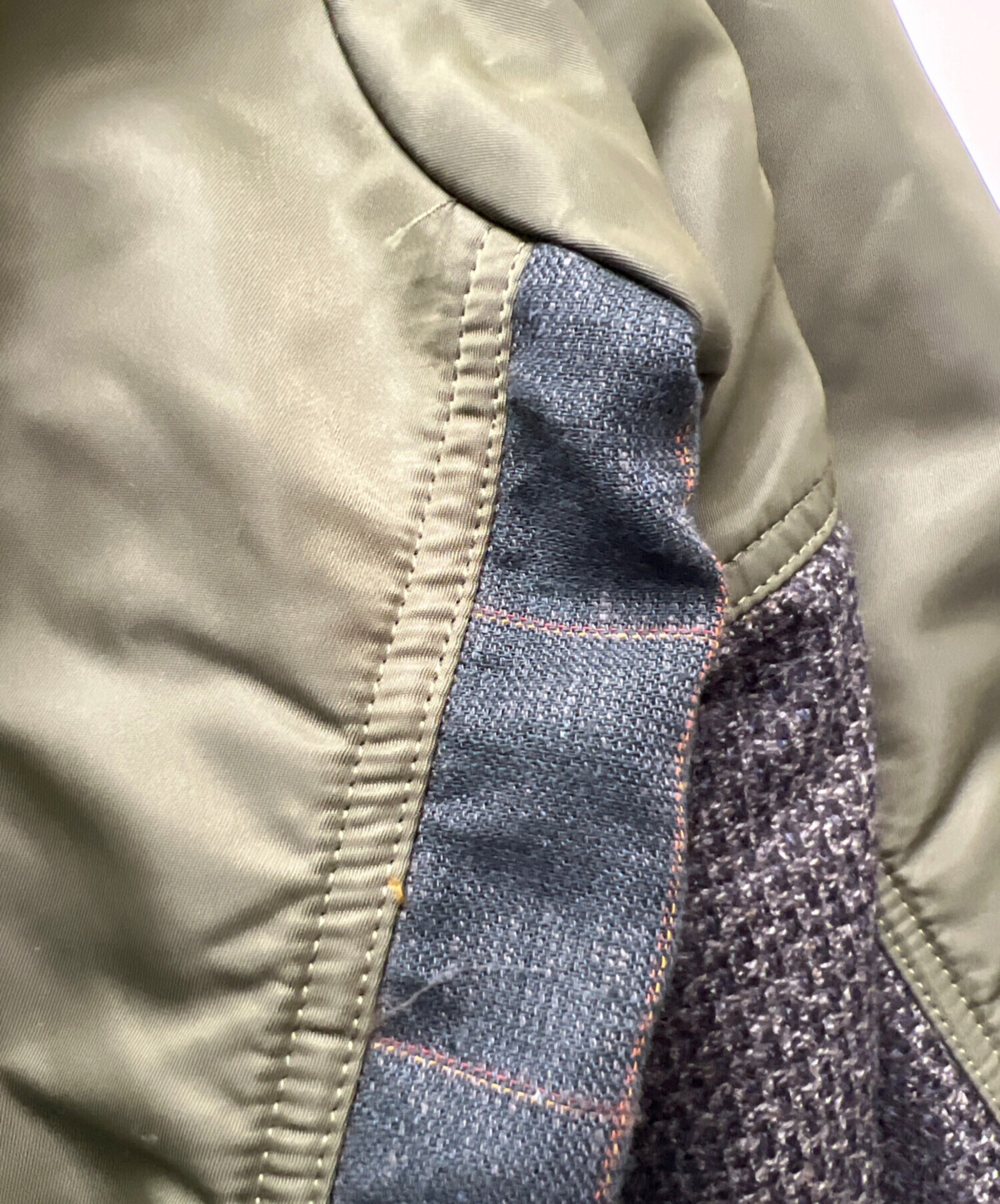 • COMME des GARCONS JUNYA WATANABE MAN(コム デ ギャルソン ジュンヤ ワタナベ マン)COMME des GARCONS JUNYA WATANABE MAN (コム デ ギャルソン ジュンヤ ワタナベ マン) 切替中綿ジャケット カーキ サイズ:Sの古着・服飾アイテム ほつれ