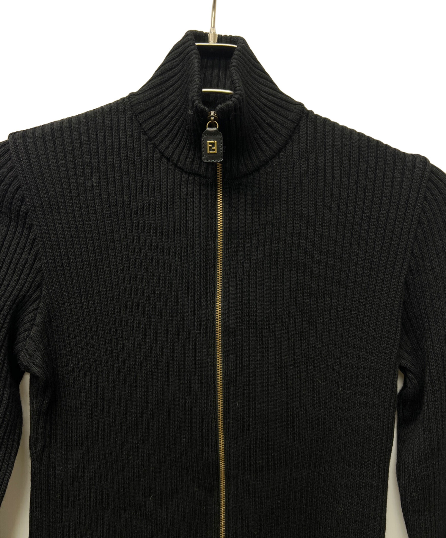 ジップアップリブニット