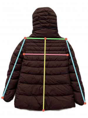 | 素材 | 表地: ポリエステル 100% 中綿: ダウン 80% フェザー 20% フード/袖口/パイピング部分: ナイロン 85% ポリウレタン 15% 裏地: ナイロン |