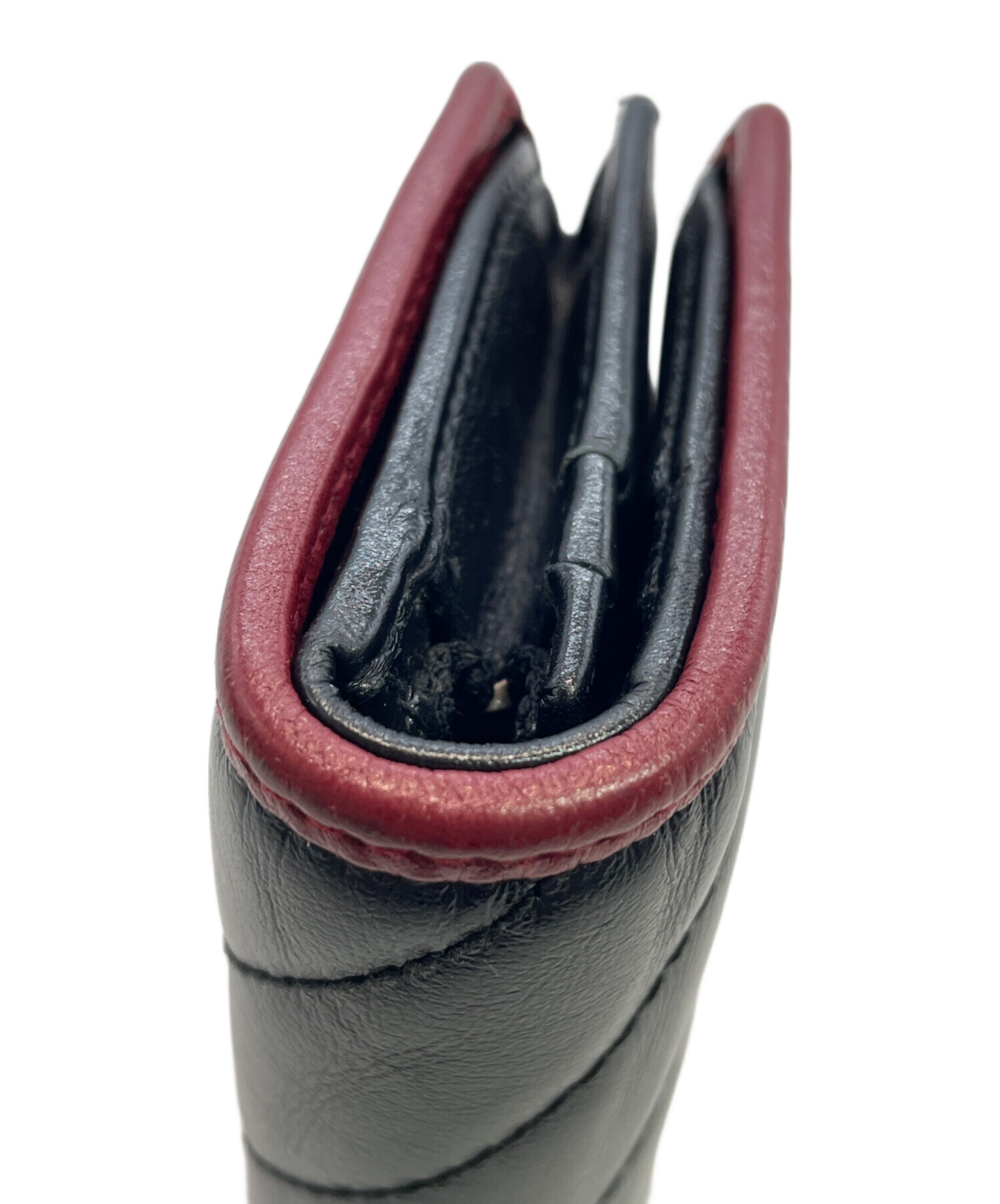 | スタッフコメント | キルティングが施されたソフトなレザーを使用した二つ折り財布でございます。ブラックの光沢感のあるレザーにゴールドのGGマーモントがあしらわれており、一目でグッチの物と分かるアイテムとなっております。縁にはレッドのレザーを使用しており、アクセントとなっております。 |