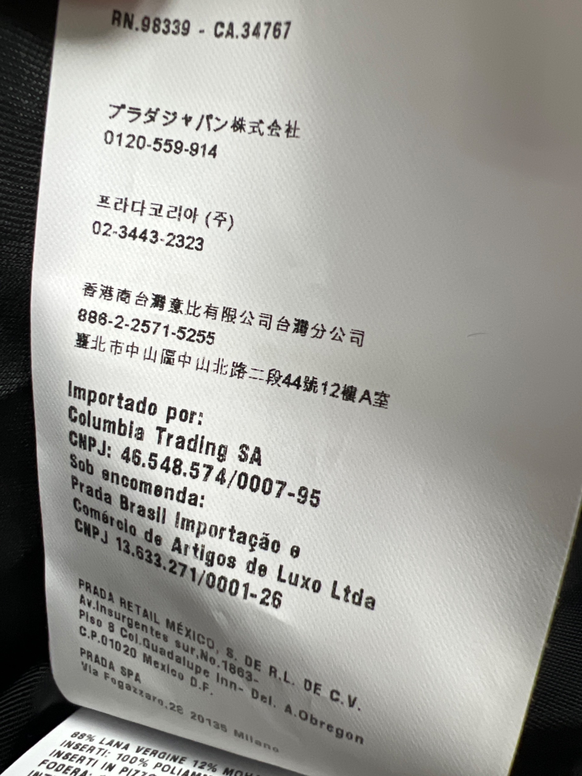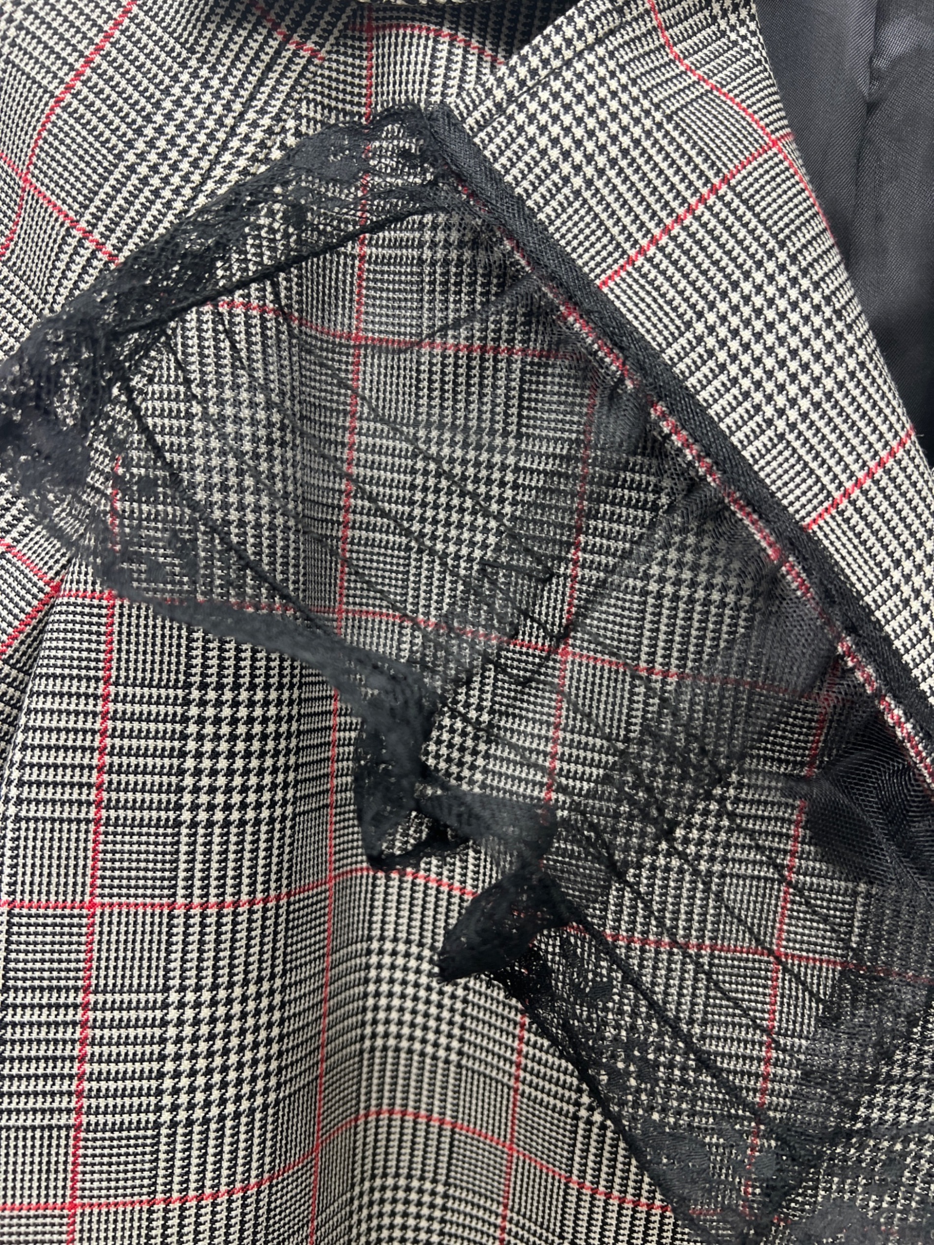 | 素材 | 表地: バージンウール 88% モヘア 12% インサート: ナイロン 100% 花模様のインサート: 綿 95% ナイロン 5% 裏生地: レーヨン 100% 芯: ポリエステル 100% |