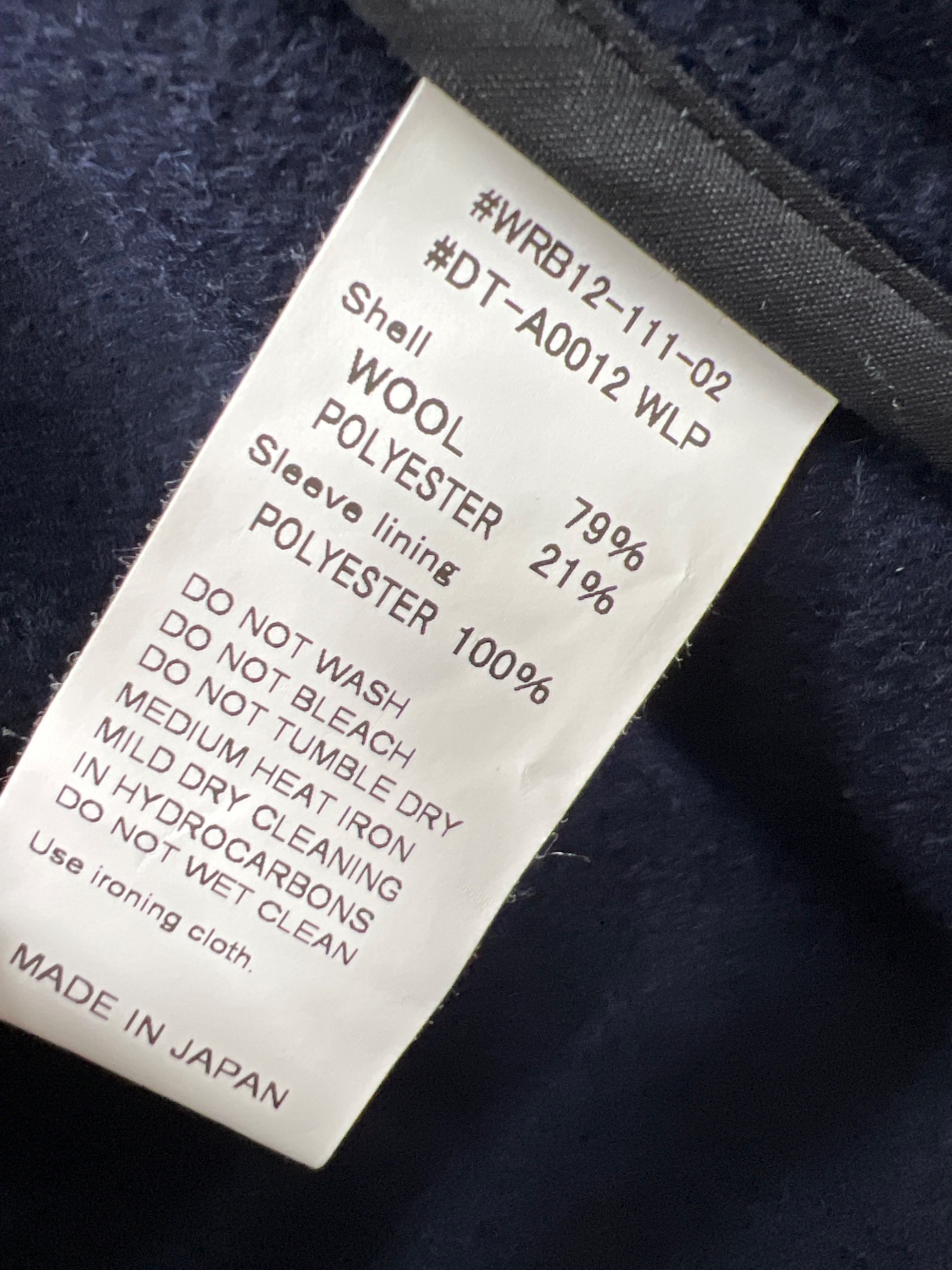 | 素材 | 表地: ウール 79% ポリエステル 21% 袖裏地: ポリエステル 100% |