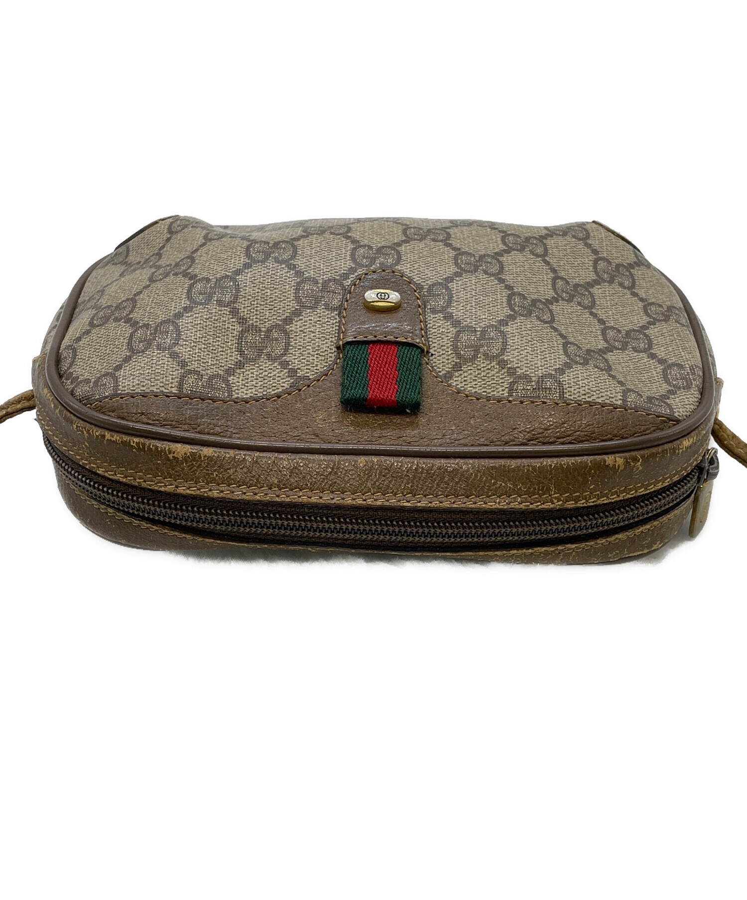 • GUCCI(グッチ)GUCCI (グッチ) ショルダーバッグ ブラウンの古着・服飾アイテム コバに傷。パーツ剥がれ。ファスナー糸の出た箇所。