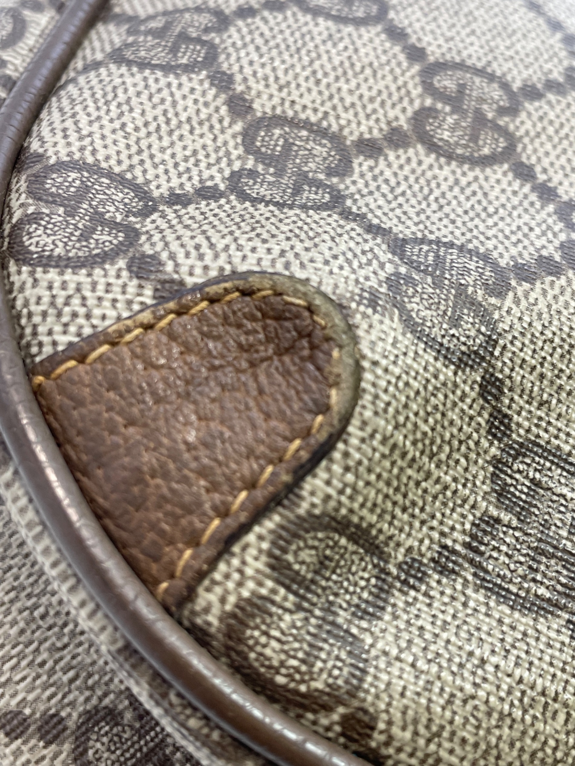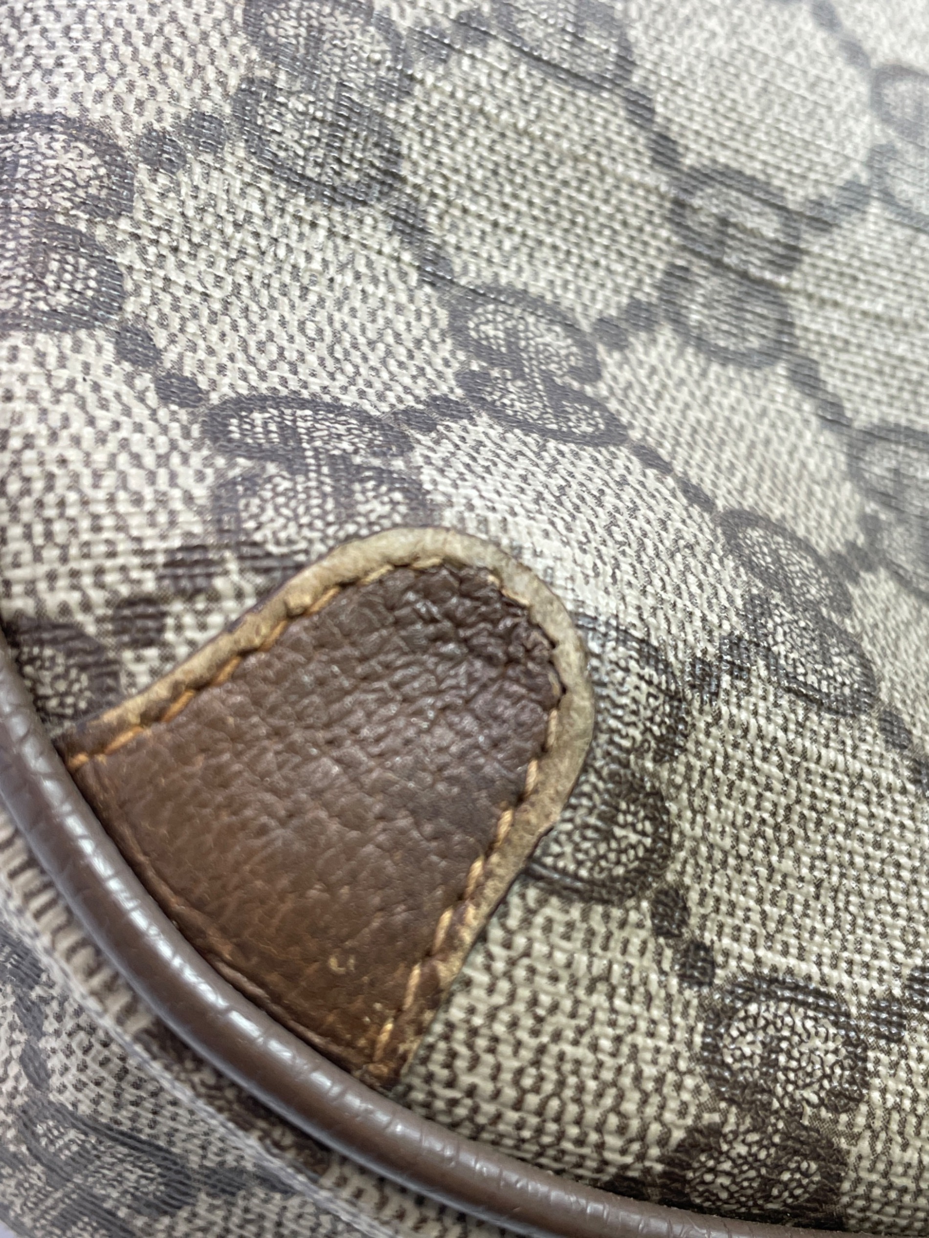 • GUCCI(グッチ)GUCCI (グッチ) ショルダーバッグ ブラウンの古着・服飾アイテム プリントに剥げ。傷、パーツ剥げ。底面汚れ。
