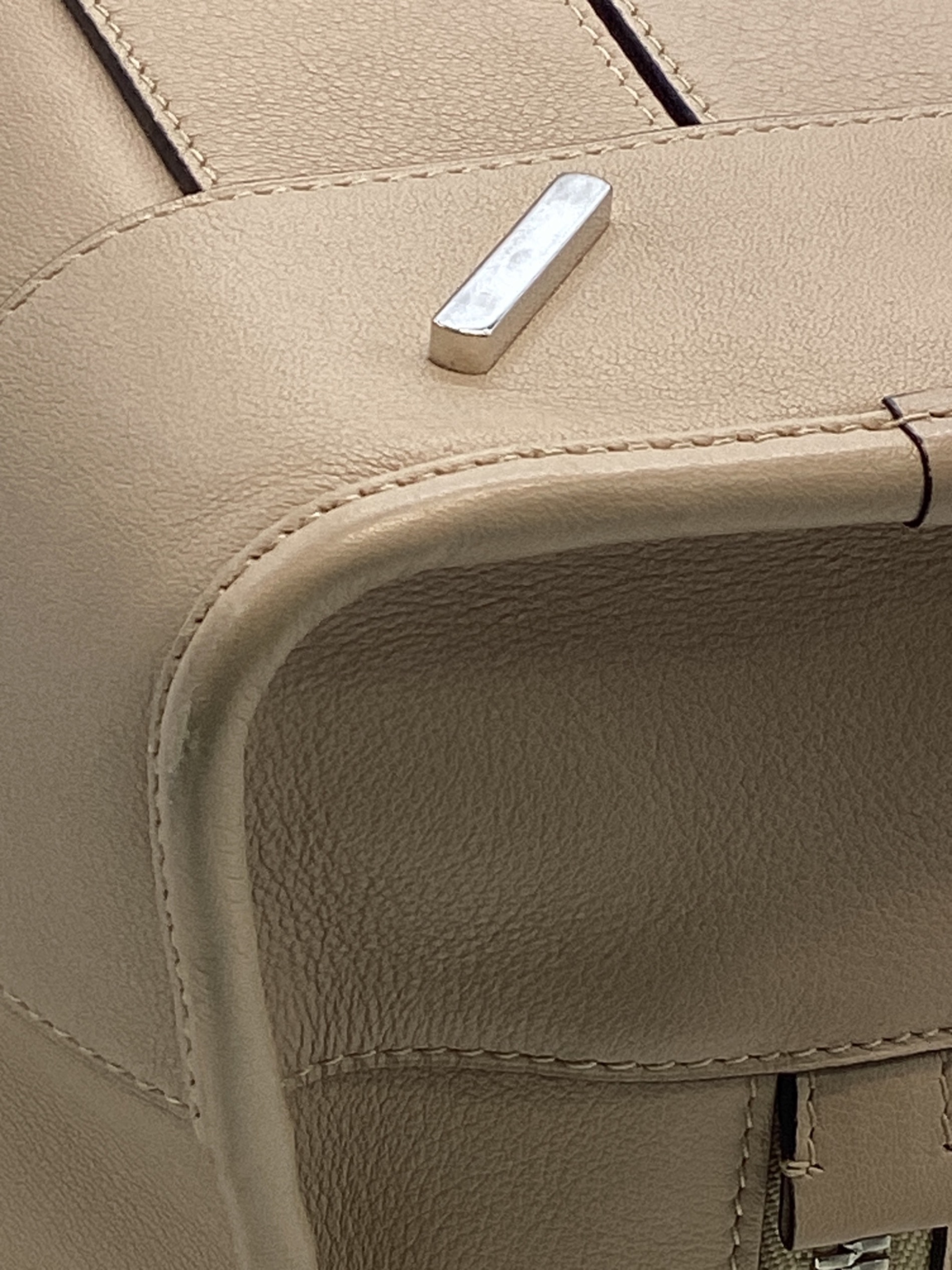 | スタッフコメント | アナグラムを立体から刻印へ、フロントから右上にと、進化してきたアマソナ28。こちらのモデルは内部にスエードとレザーの異素材が使用されているのが特徴。南京錠がないところがアマソナの中ではこちらのモデルならでは。ネームタグのシルエットもアップデートされつつ、シンプルなデザインを好む人に支持の高いアイテム。レザーの経年美化は感嘆させられるような味わいです。 |