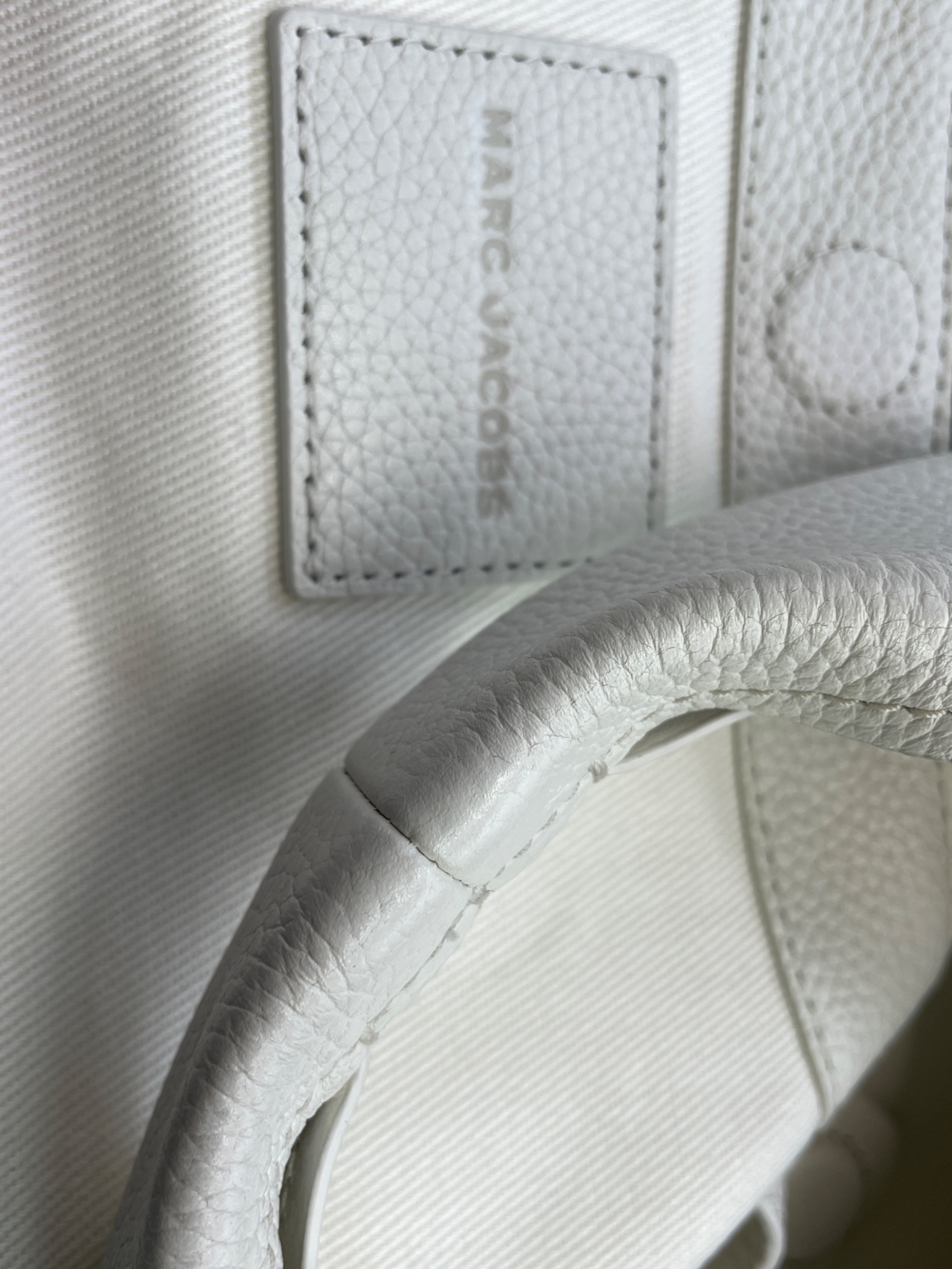 • MARC JACOBS(マークジェイコブズ)MARC JACOBS (マークジェイコブズ) ハンドバッグ ホワイトの古着・服飾アイテム 糸に黄ばみ、取ってヒビ。