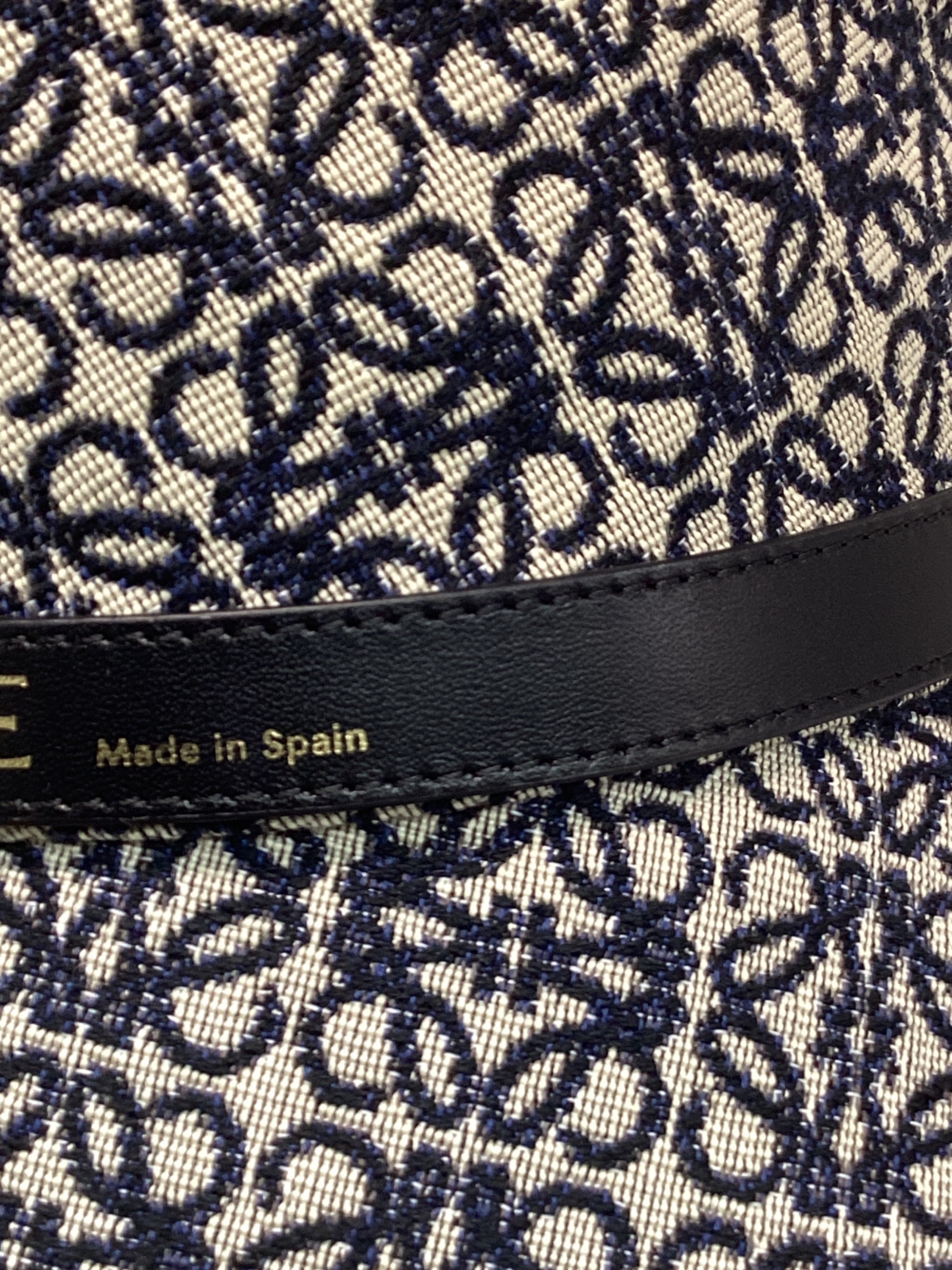 • LOEWE(ロエベ)LOEWE (ロエベ) アナグラムバケットハット ネイビー×ベージュ サイズ:59の古着・服飾アイテム ベルトに線、シワ。