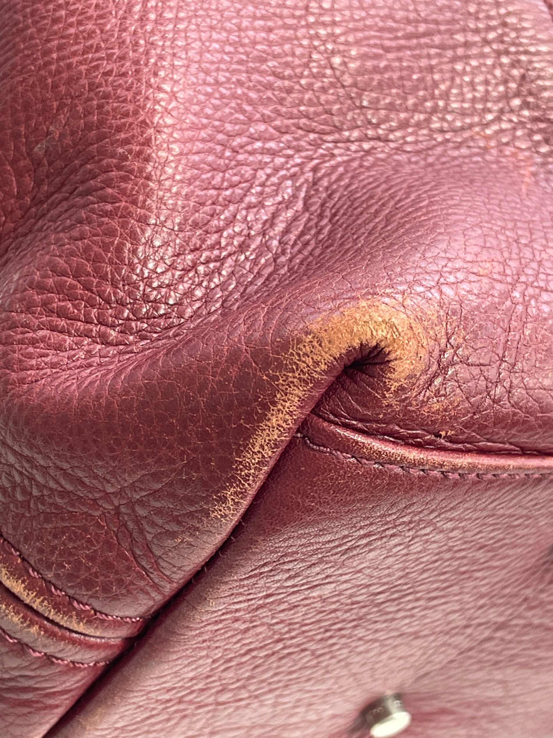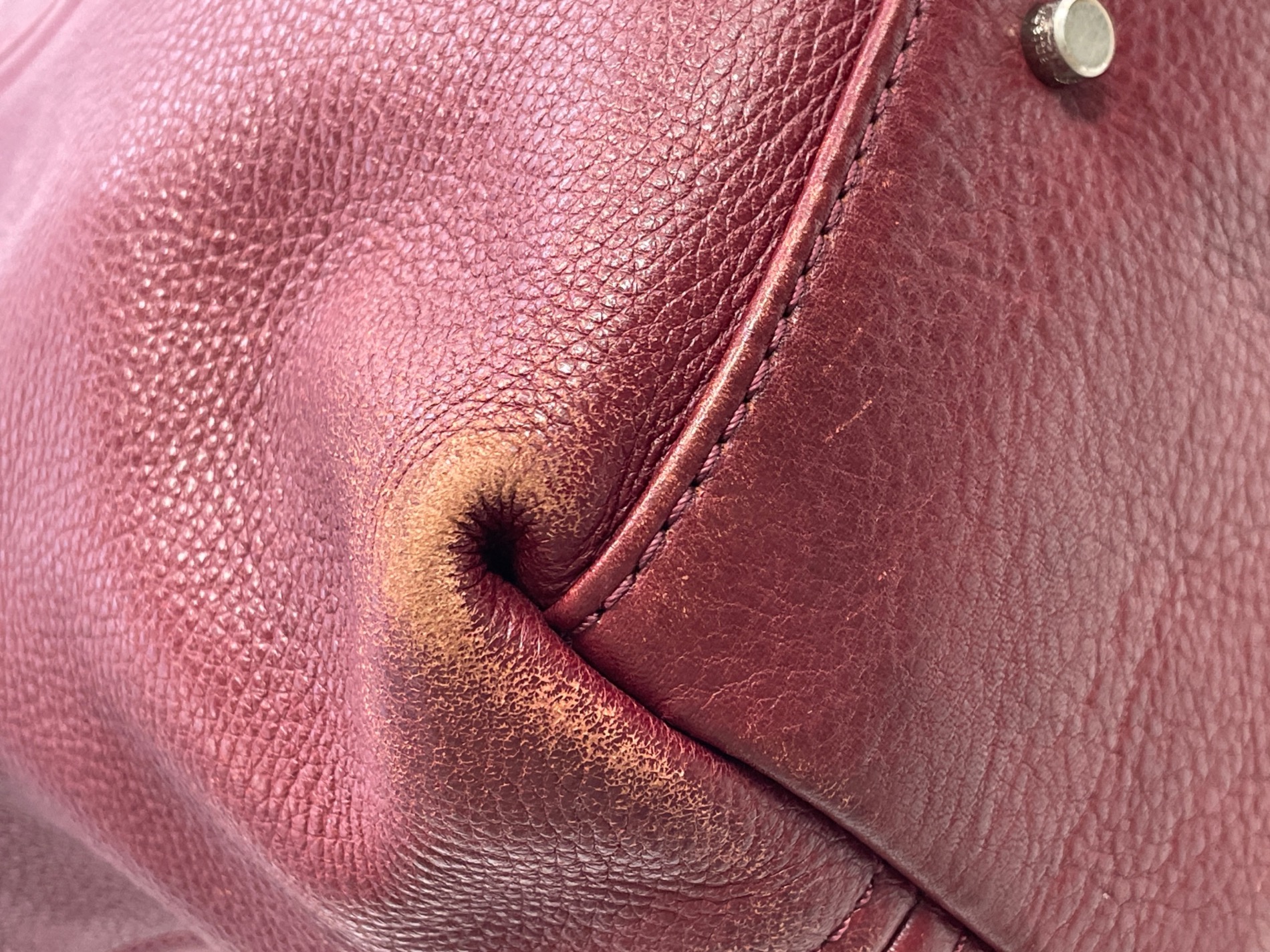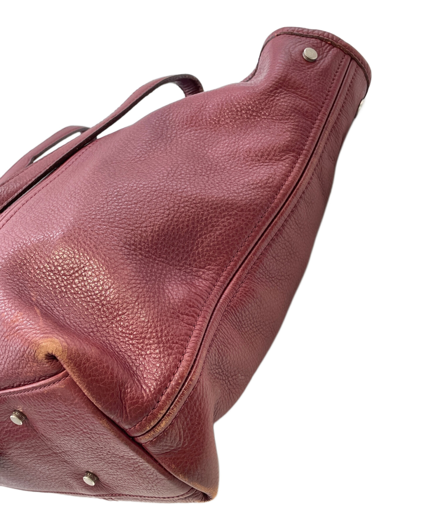 • aniary(アニアリ)aniary (アニアリ) シュリンクレザートートバッグ レッドの古着・服飾アイテム 剥げ、汚れ。角擦れ、剥がれ。