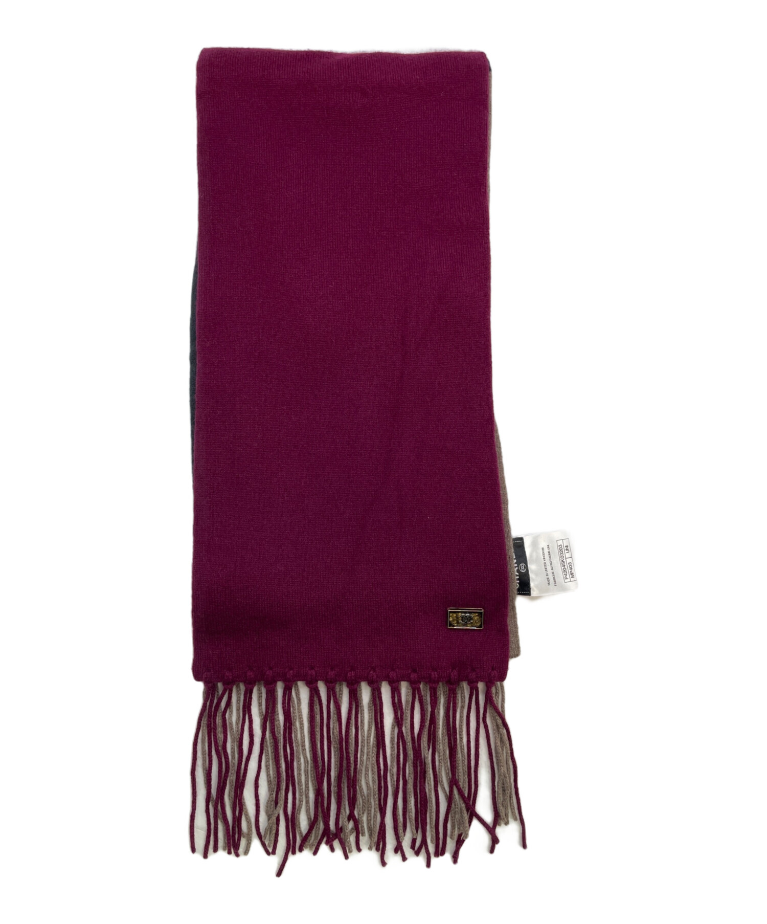• CHANEL(シャネル)CHANEL (シャネル) マフラー レッド×グレーの古着・服飾アイテム 毛羽立ち。シワ。
