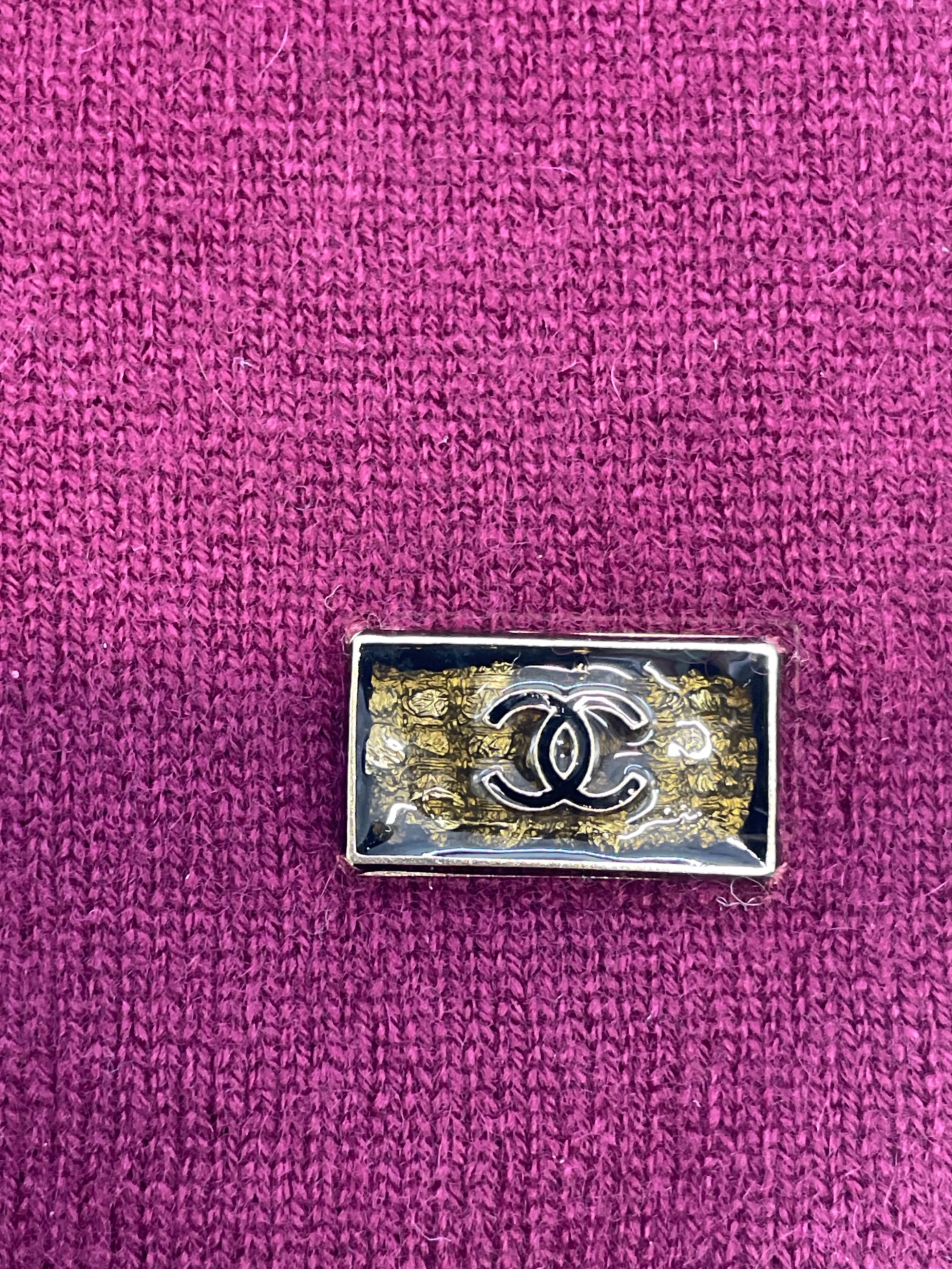 • CHANEL(シャネル)CHANEL (シャネル) マフラー レッド×グレーの古着・服飾アイテム つまんだような形になった部分あり。