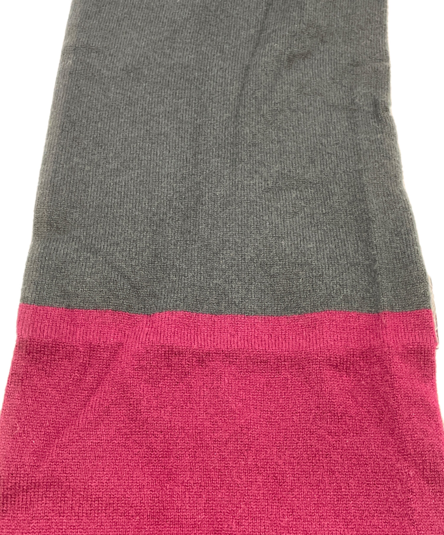 • CHANEL(シャネル)CHANEL (シャネル) マフラー レッド×グレーの古着・服飾アイテム シワ。つまんだようなダメージ。