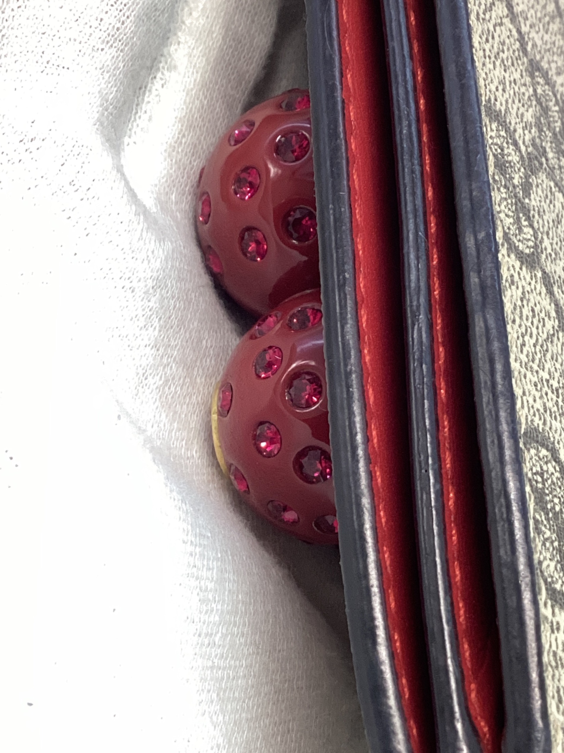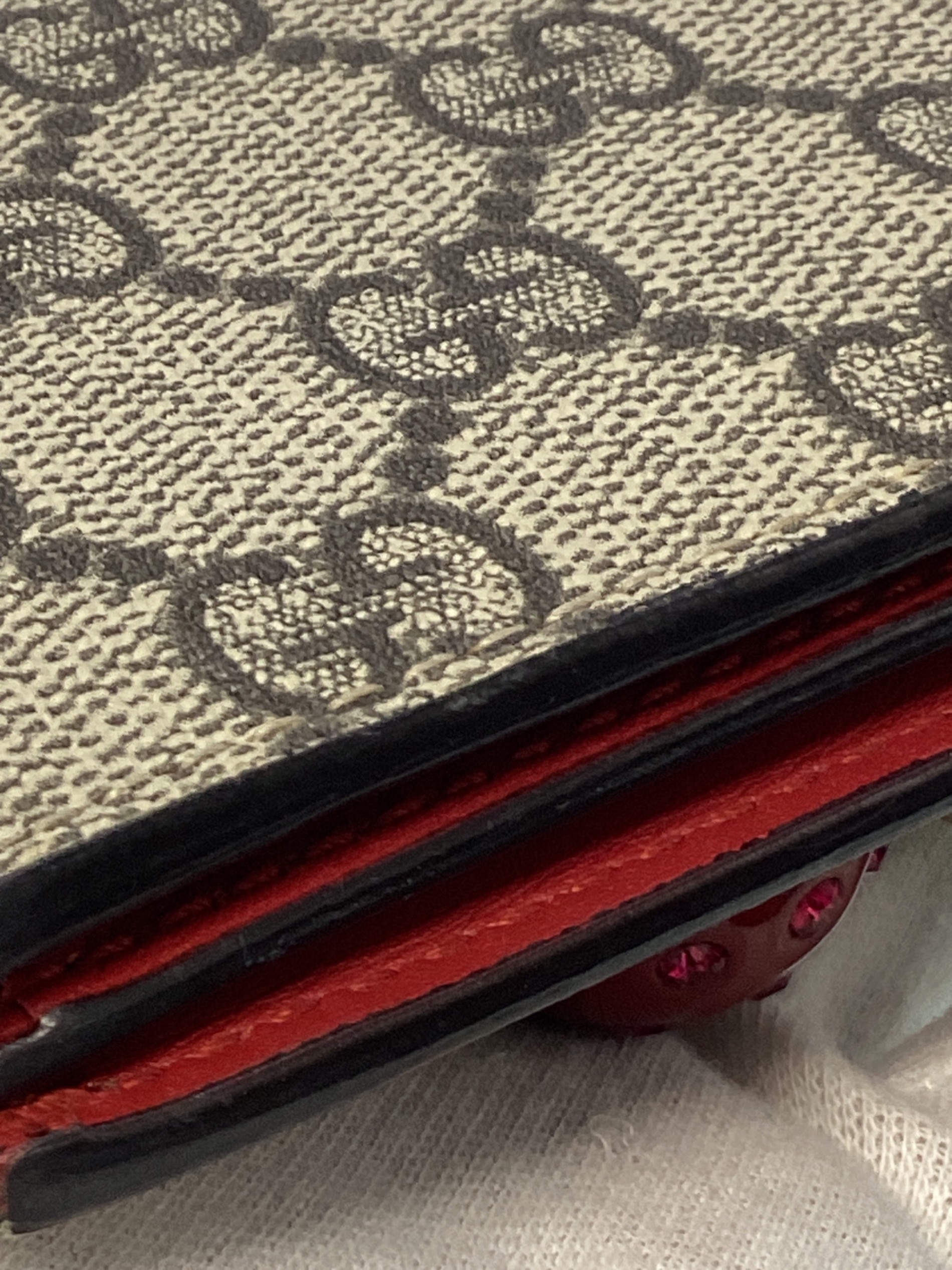 | スタッフコメント | 立体感のあるラインストーンが装飾されたチェリーモチーフが特徴のGUCCI GGスプリーム チェリー コンパクトウォレットでございます。ブランドを象徴するGGスプリームキャンバスに愛らしいチェリーモチーフをあしらい、華やかさと上品さを兼ね備えたデザインでございます。コンパクトながら収納力にも優れており、日常使いに最適な仕様でございます。 |
