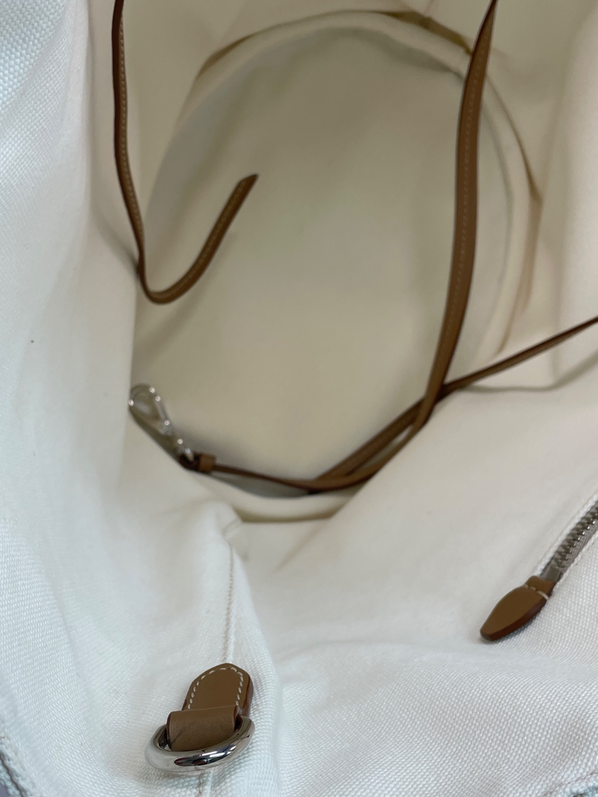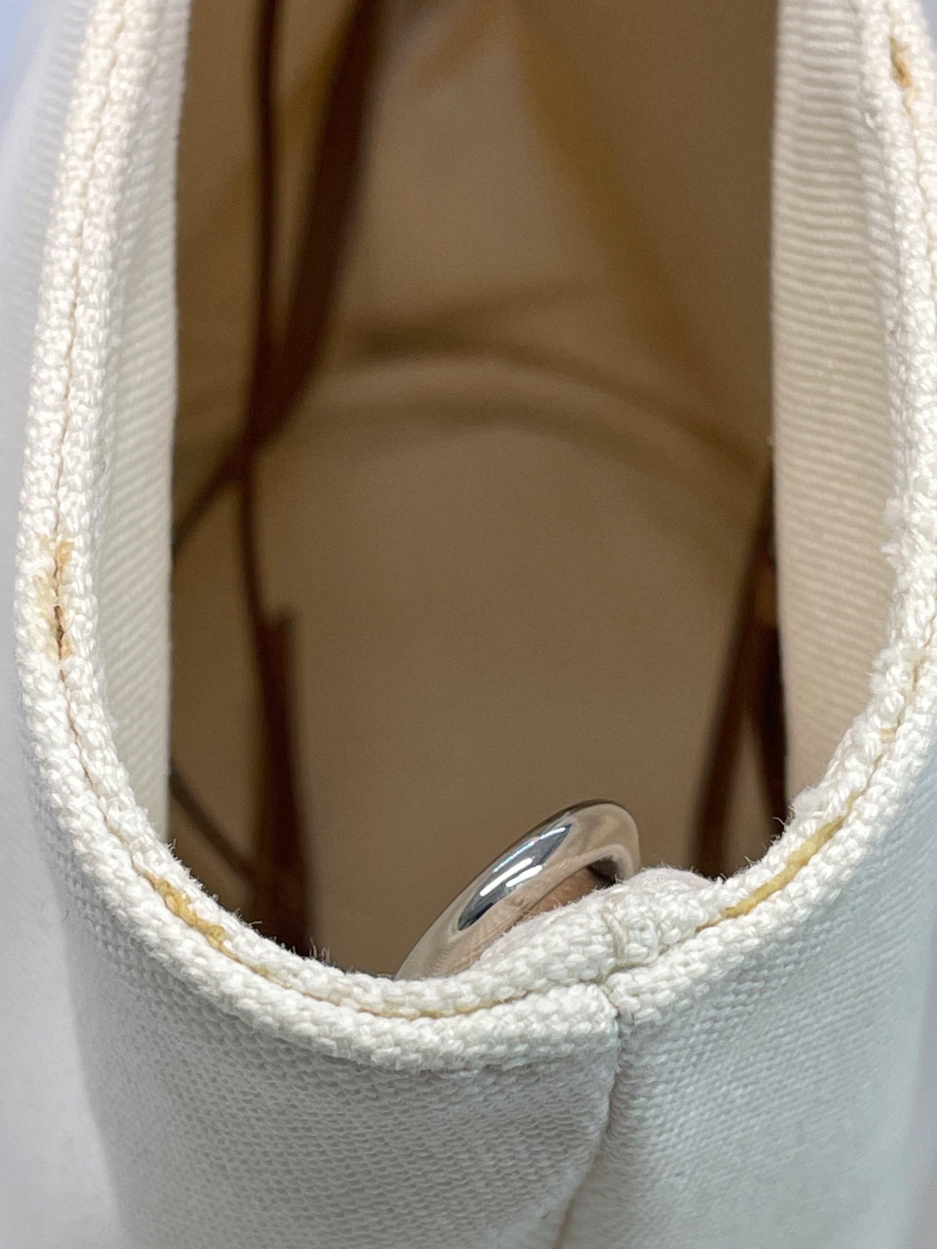 • PRADA(プラダ)PRADA (プラダ) カナパ トートバッグ ホワイトの古着・服飾アイテム 開口部汚れ。
