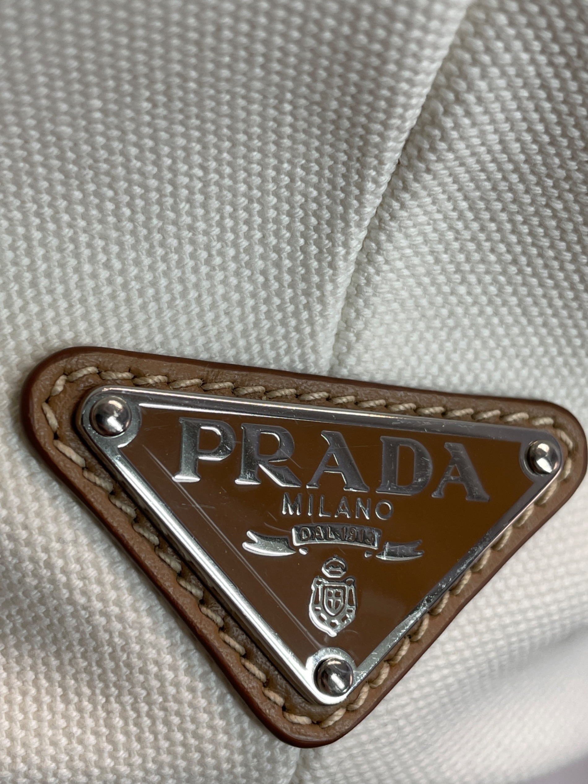 • PRADA(プラダ)PRADA (プラダ) カナパ トートバッグ ホワイトの古着・服飾アイテム ロゴプレート。
