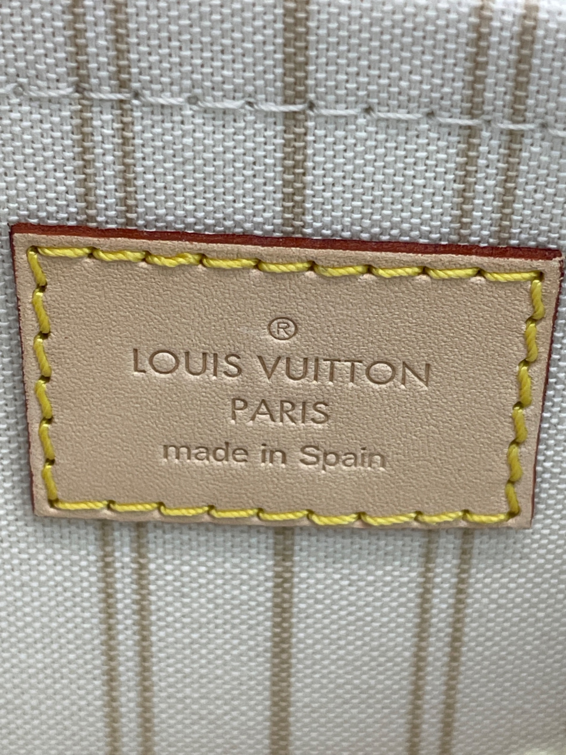 • LOUIS VUITTON(ルイ ヴィトン)LOUIS VUITTON (ルイ ヴィトン) ネヴァーフルMMポーチ ホワイト×パープル サイズ:MMサイズの古着・服飾アイテム フチに穴、汚れ。剥がれ。