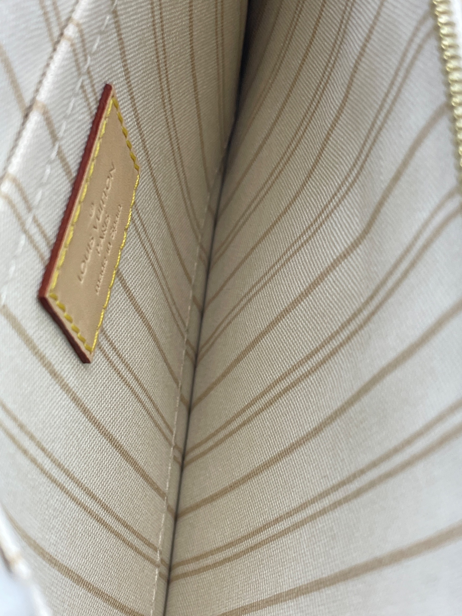 • LOUIS VUITTON(ルイ ヴィトン)LOUIS VUITTON (ルイ ヴィトン) ネヴァーフルMMポーチ ホワイト×パープル サイズ:MMサイズの古着・服飾アイテム 微細な赤い点。