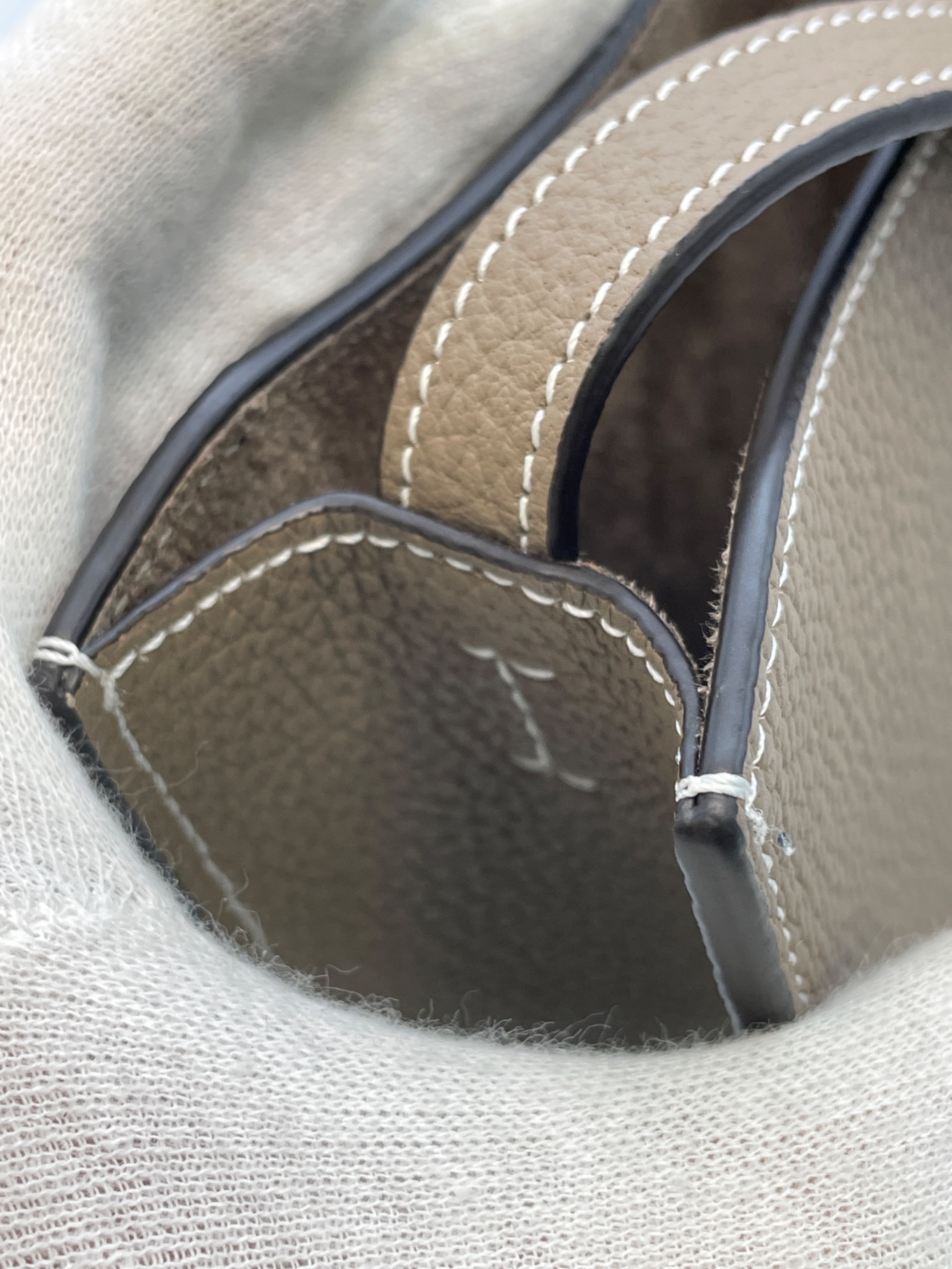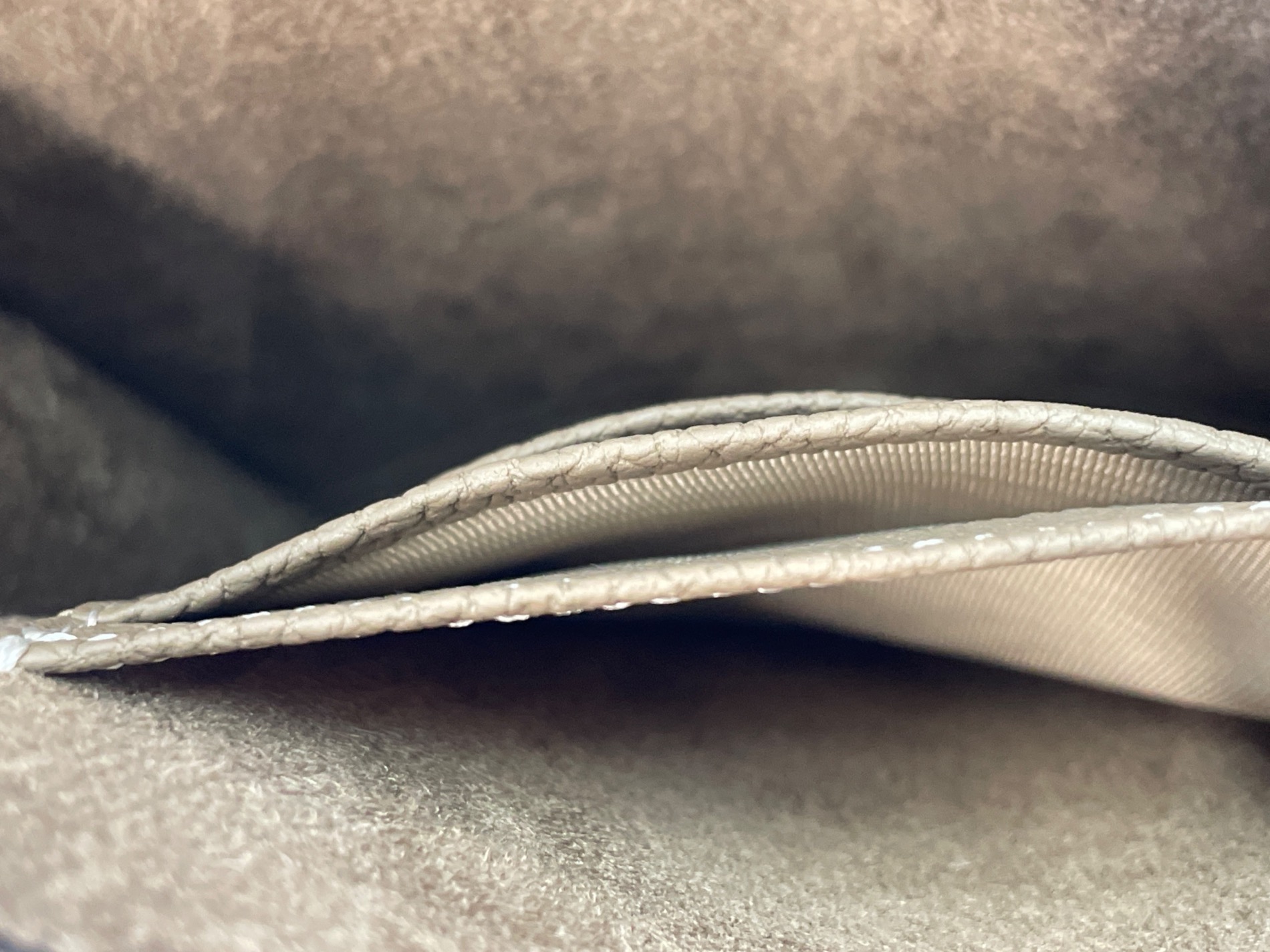 • bonaventura(ボナベンチュラ)bonaventura (ボナベンチュラ) リアバッグ ブラウンの古着・服飾アイテム コバに凹凸。微細な穴あり。
