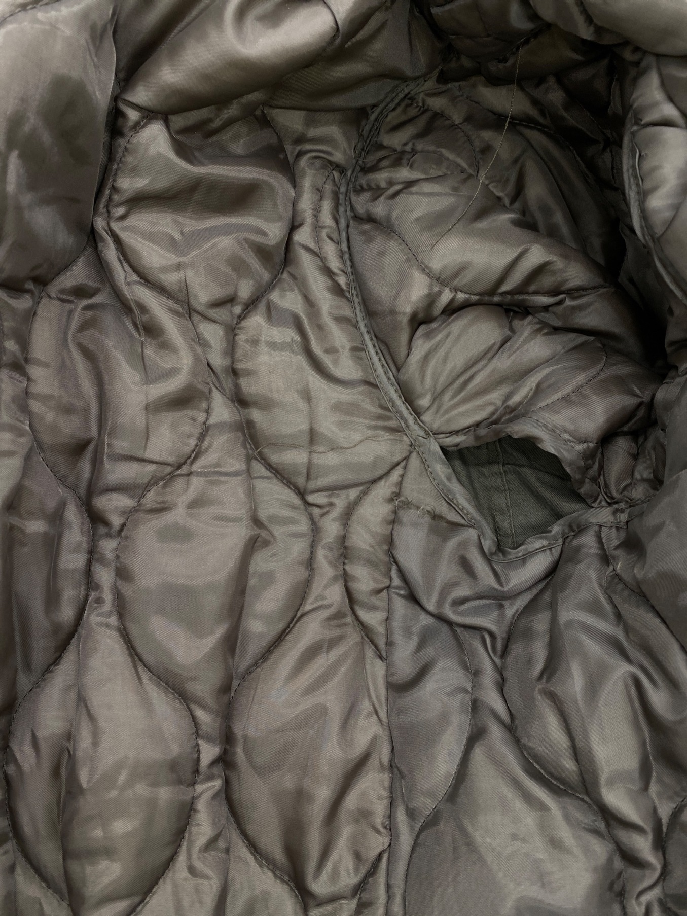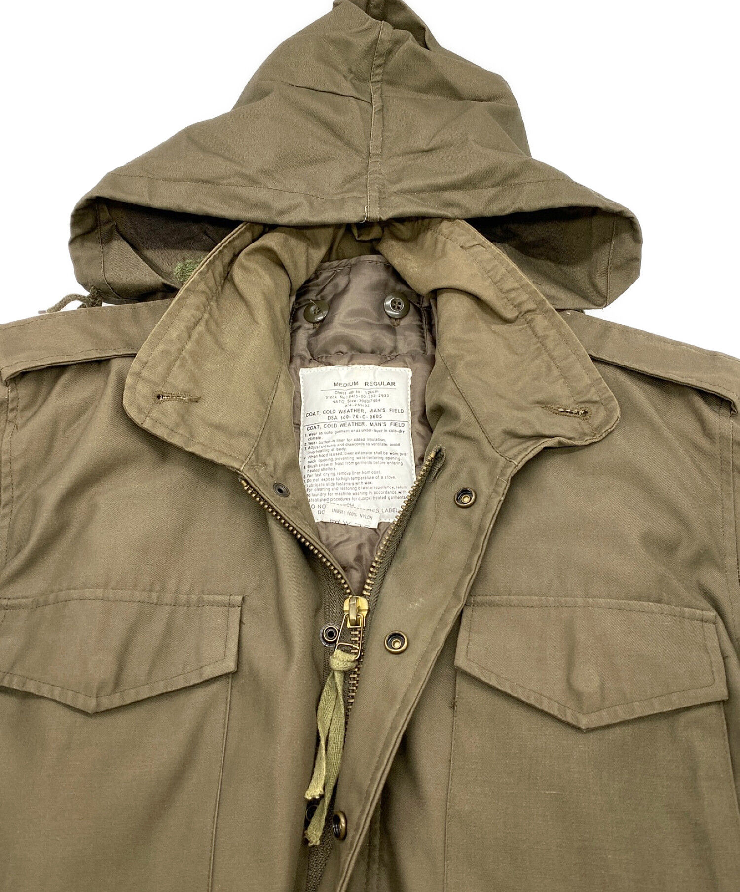 状態 薄汚れ、左胸ポケットのほつれ、面ファスナーの汚れ・変色、袖口の薄汚れ、ライナーの糸引き・ほつれがございます。やや使用感がございますが、大きく目立ったダメージはなく、全体的な状態は良好です。